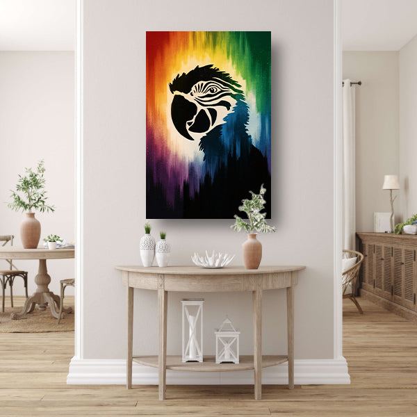 Kleurrijk papegaai silhouet met abstracte achtergrond acrylglas