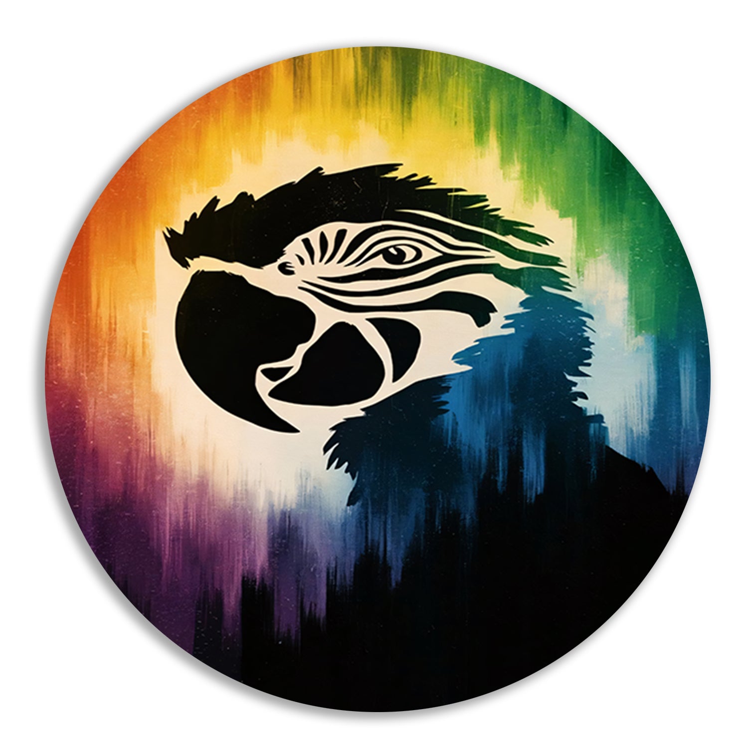 Kleurrijk papegaai silhouet met abstracte achtergrond aluminium muurcirkel