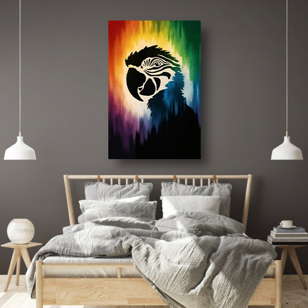 Kleurrijk papegaai silhouet met abstracte achtergrond canvas met baklijst