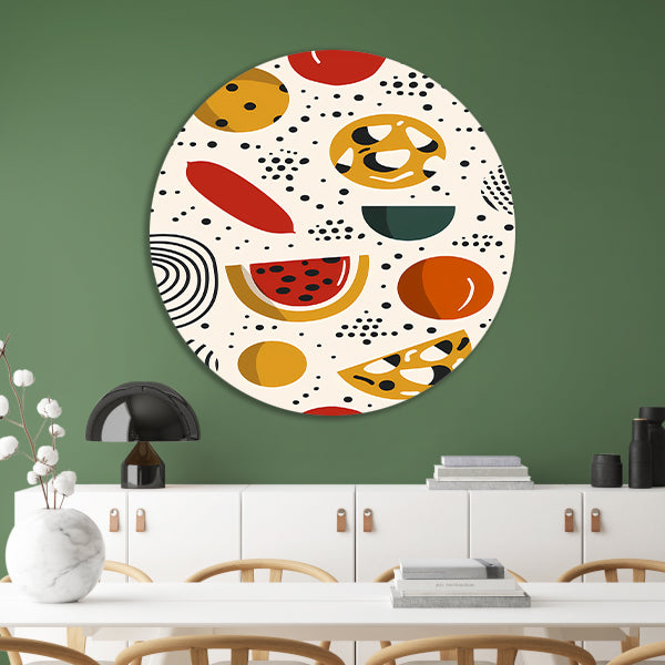 Kleurrijk Popart Fruitontwerp aluminium muurcirkel