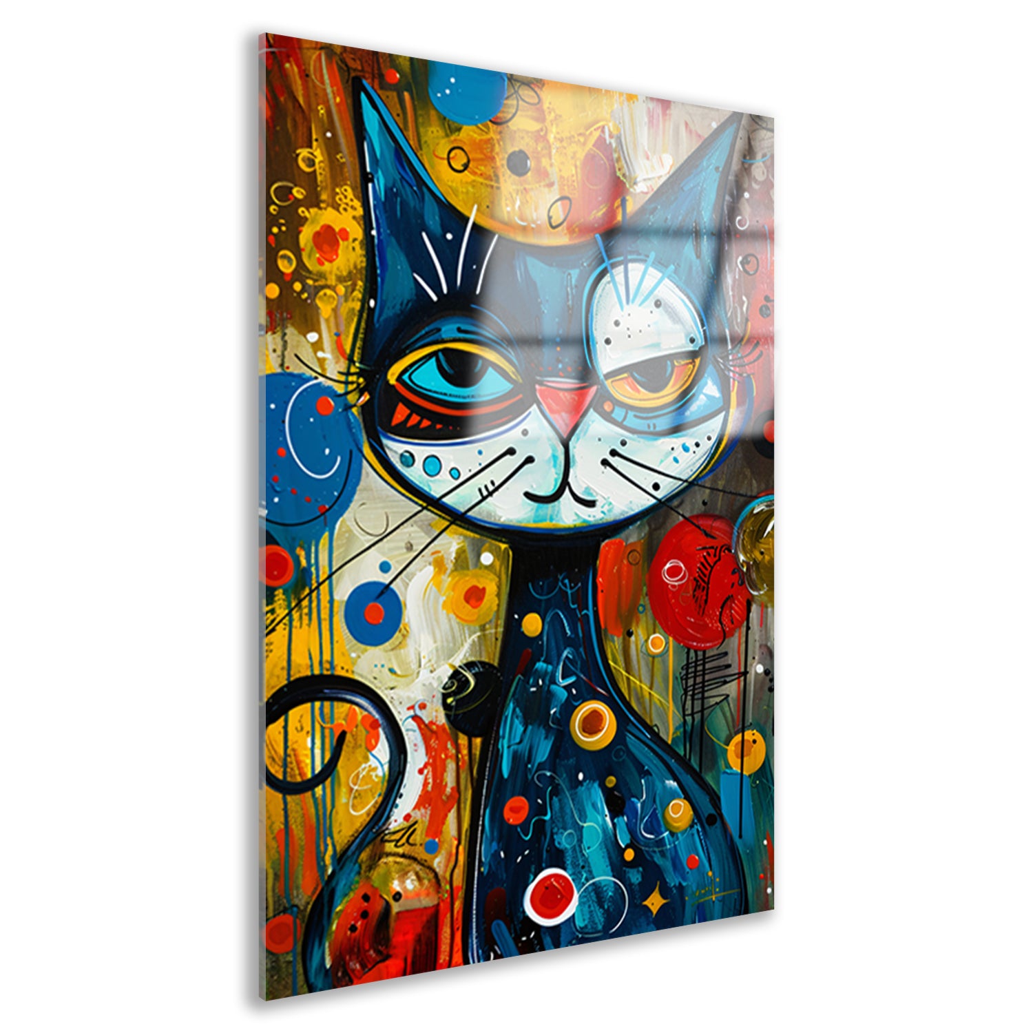 Kleurrijk Popart Schilderij van een Kat acrylglas