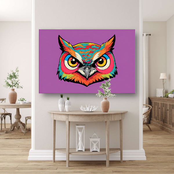 Kleurrijk popart-uilenportret voor moderne interieurs canvas met baklijst