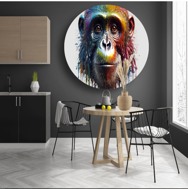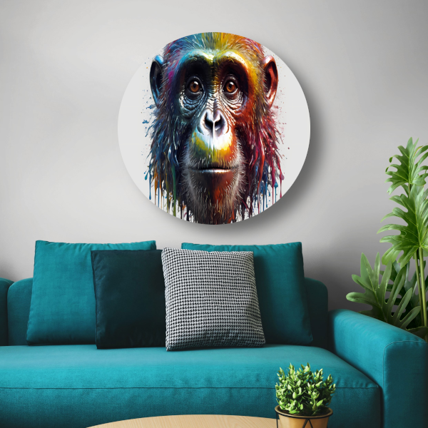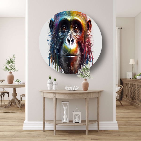 Kleurrijk Portret van een Aap met Verf aluminium muurcirkel