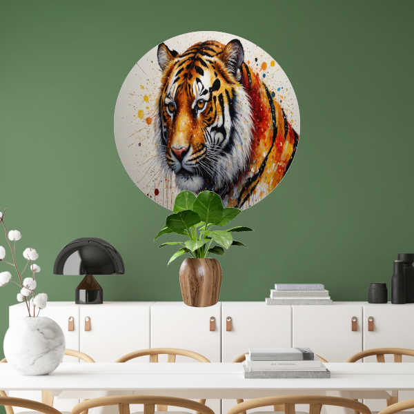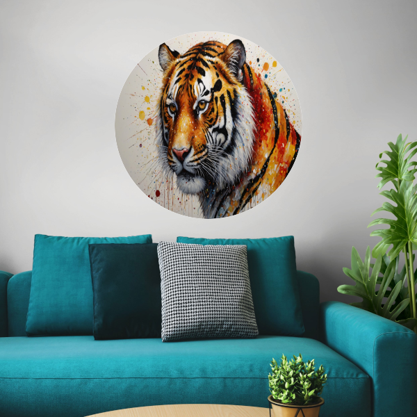 Kleurrijk Portret van een Tijger in Abstracte Stijl aluminium muurcirkel