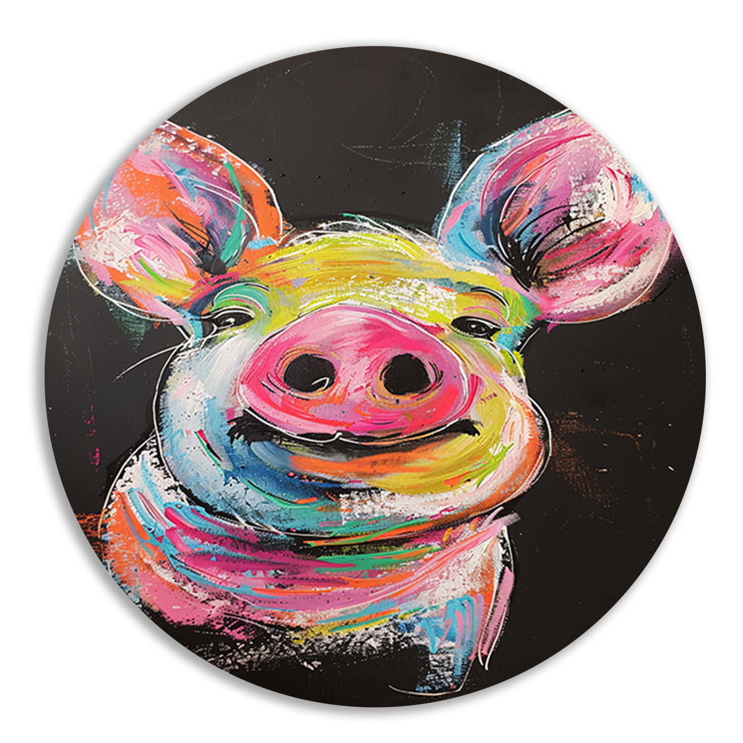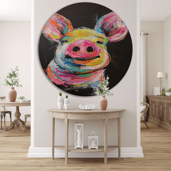 Kleurrijk portret van een vrolijk varken forex muurcirkel