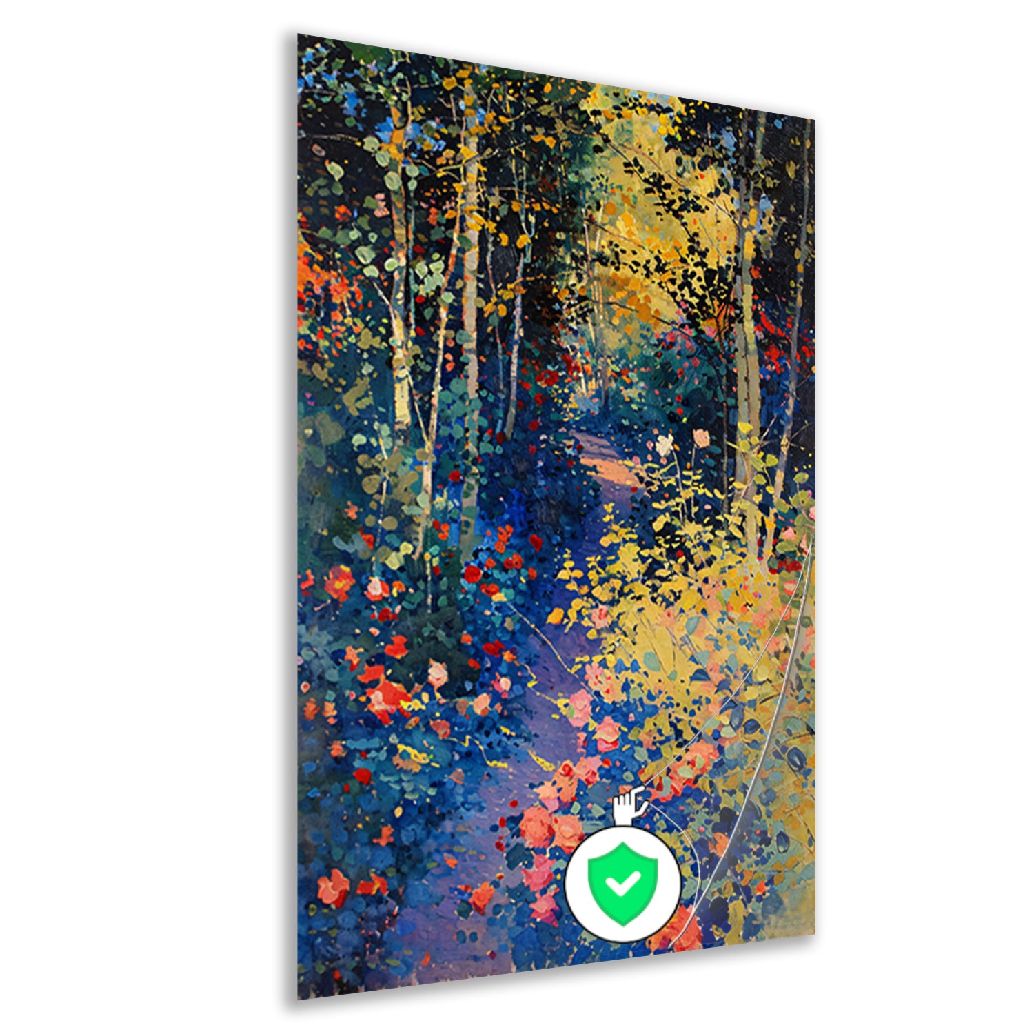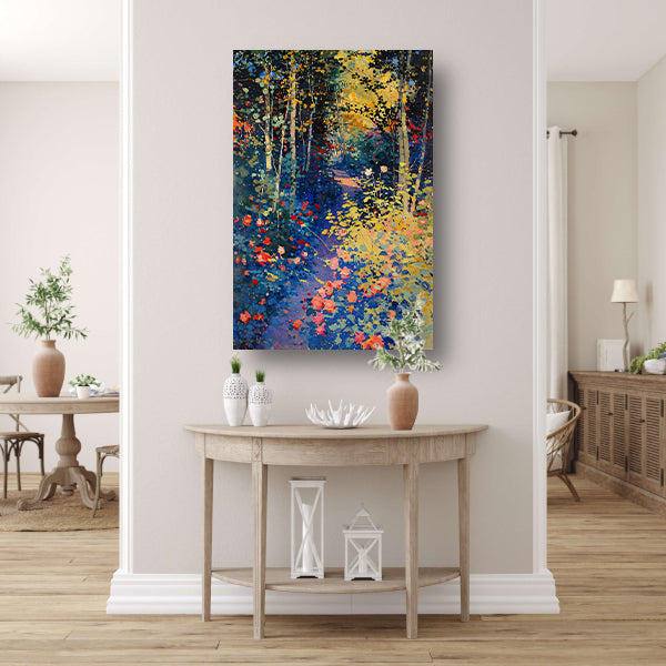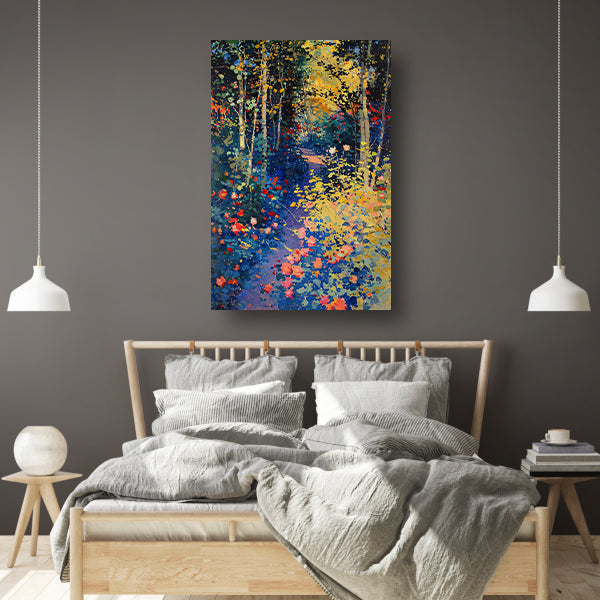 Kleurrijk schilderij van een bloemenrijk bos poster