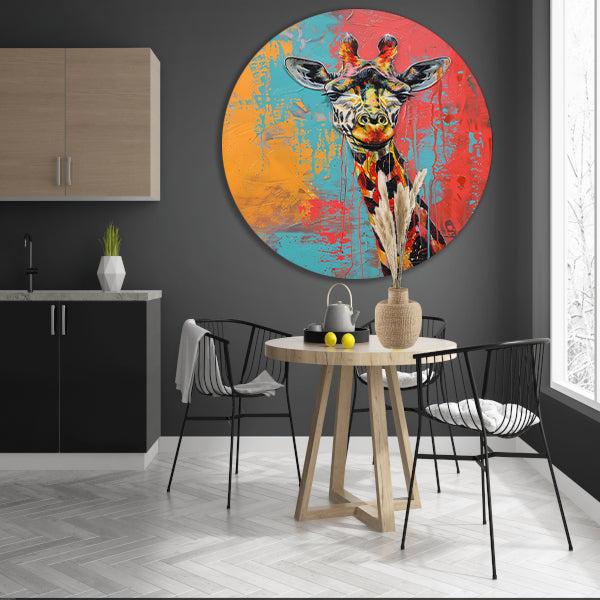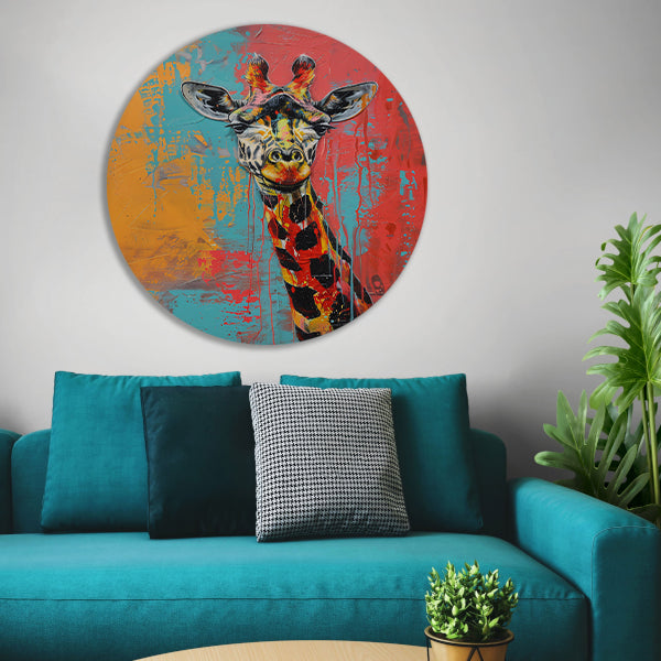 Kleurrijk schilderij van een giraffe aluminium muurcirkel