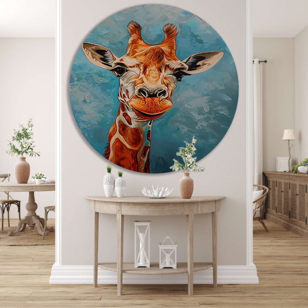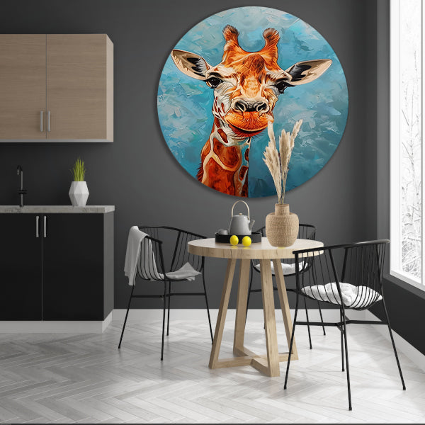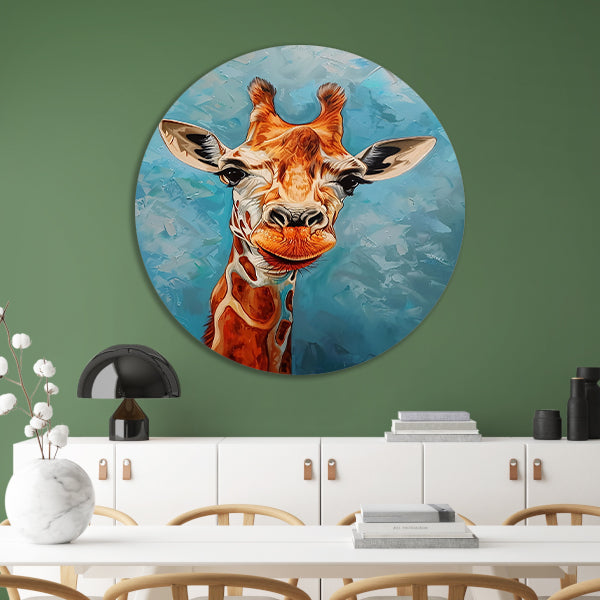 Of je nu een kinderkamer wilt opfleuren of een statement wilt maken in de woonkamer, dit kleurrijke schilderij van een giraffe op een forex muurcirkel zal zeker de aandacht trekken en een vrolijke sfeer creëren. Bestel vandaag nog en geef jouw ruimte een unieke en artistieke touch!
