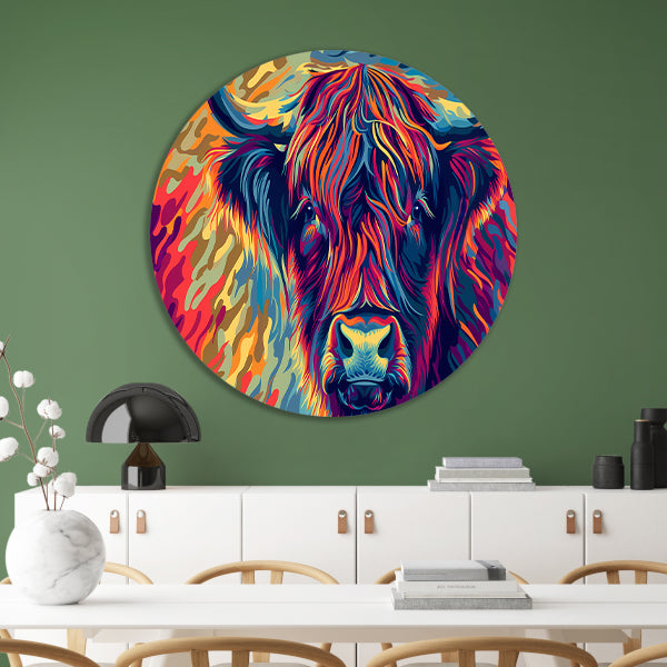 Of je nu een liefhebber bent van Schotse hooglanders, op zoek bent naar een uniek cadeau of gewoon op zoek bent naar een eyecatcher voor aan de muur, deze kleurrijke muurcirkel is een echte aanwinst. Bestel hem vandaag nog en geef jouw interieur een unieke en persoonlijke touch!