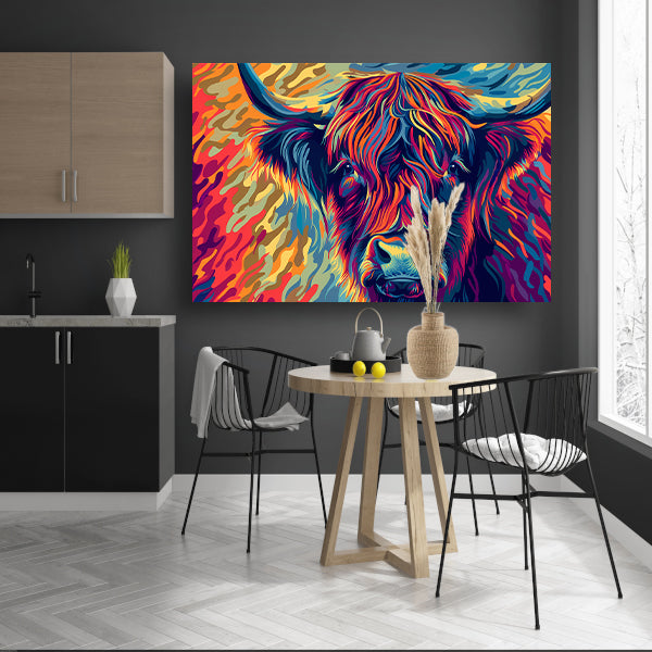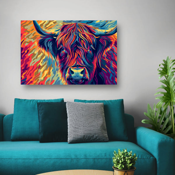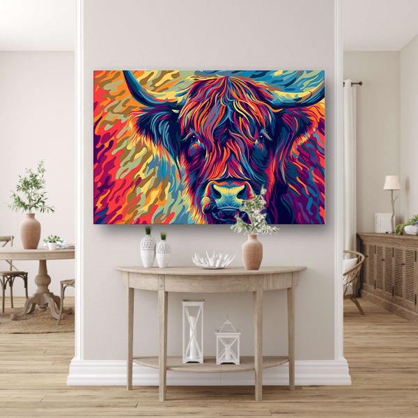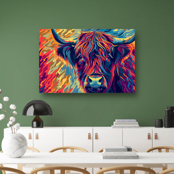Kleurrijk schilderij van Schotse hooglander canvas met baklijst