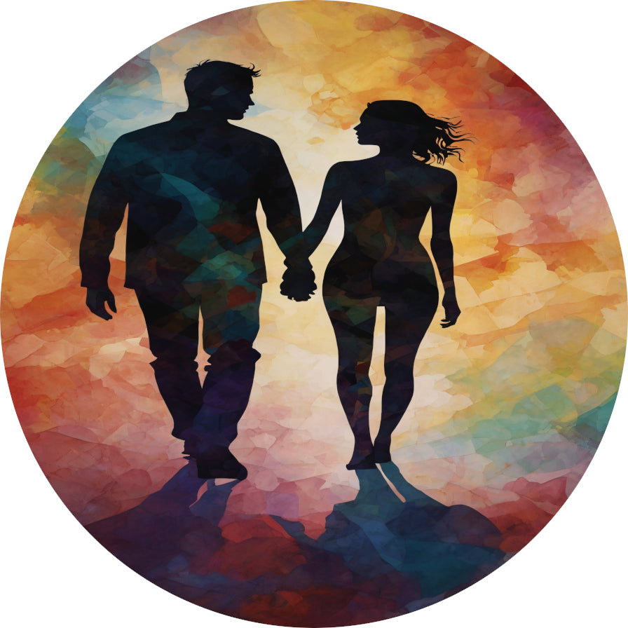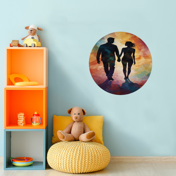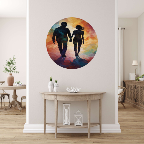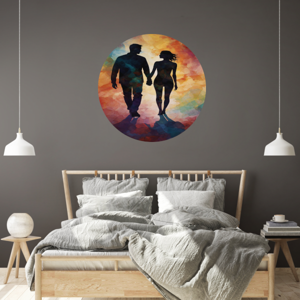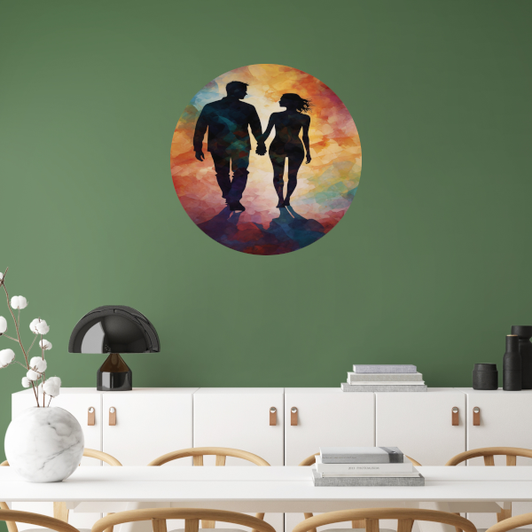 Kleurrijk silhouet van een liefdevol paar forex muurcirkel