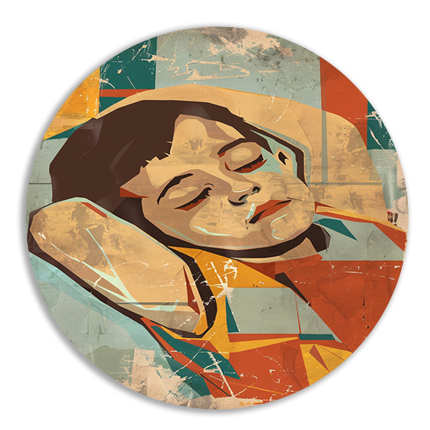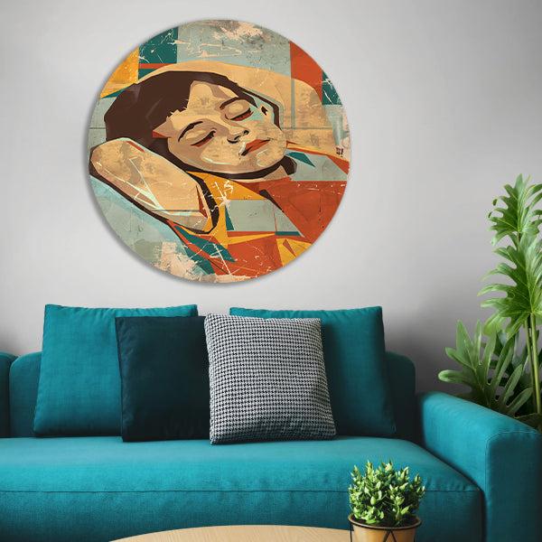 Kleurrijk slapend kind in abstracte stijl aluminium muurcirkel