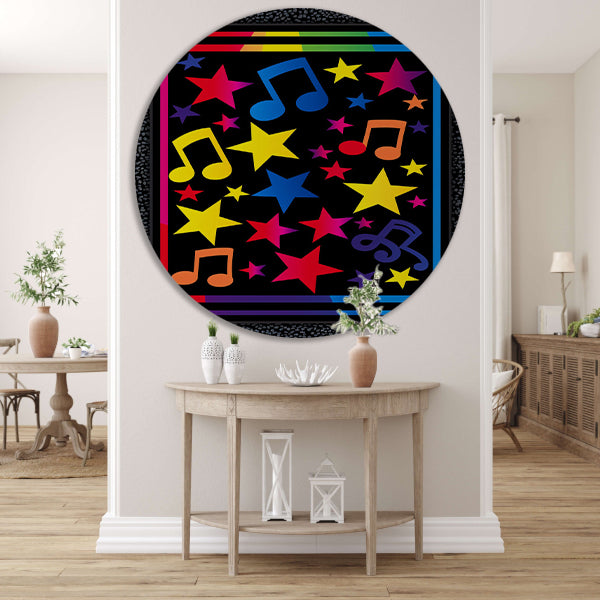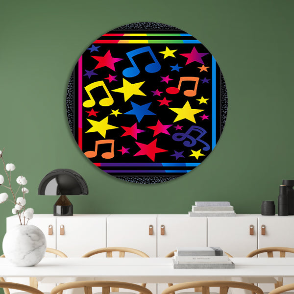 Kleurrijk Sterren en Muzikale Noten Explosie aluminium muurcirkel