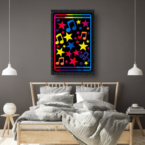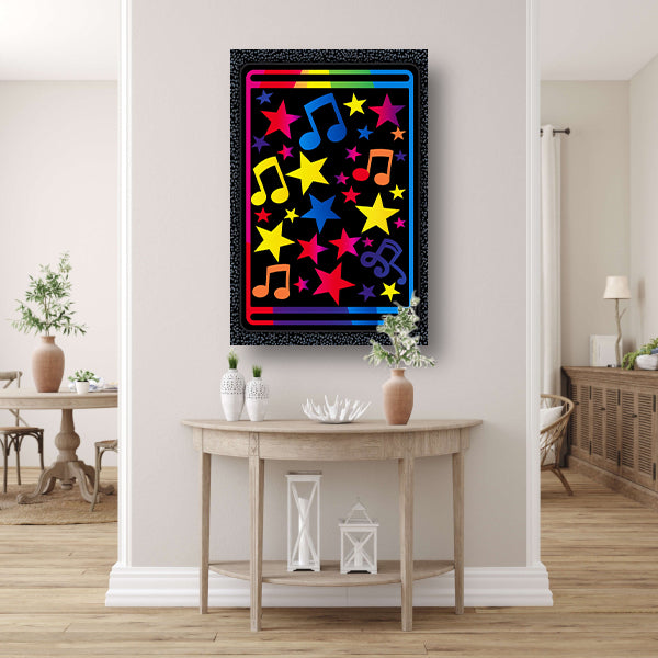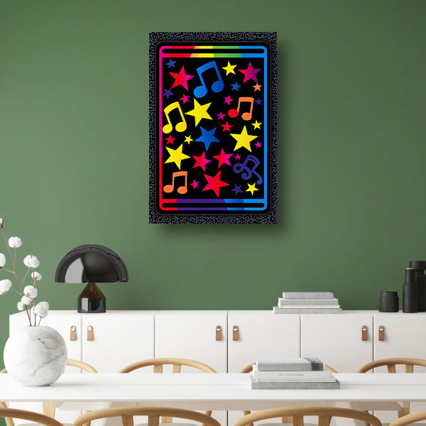 Kleurrijk Sterren en Muzikale Noten Explosie canvas met baklijst