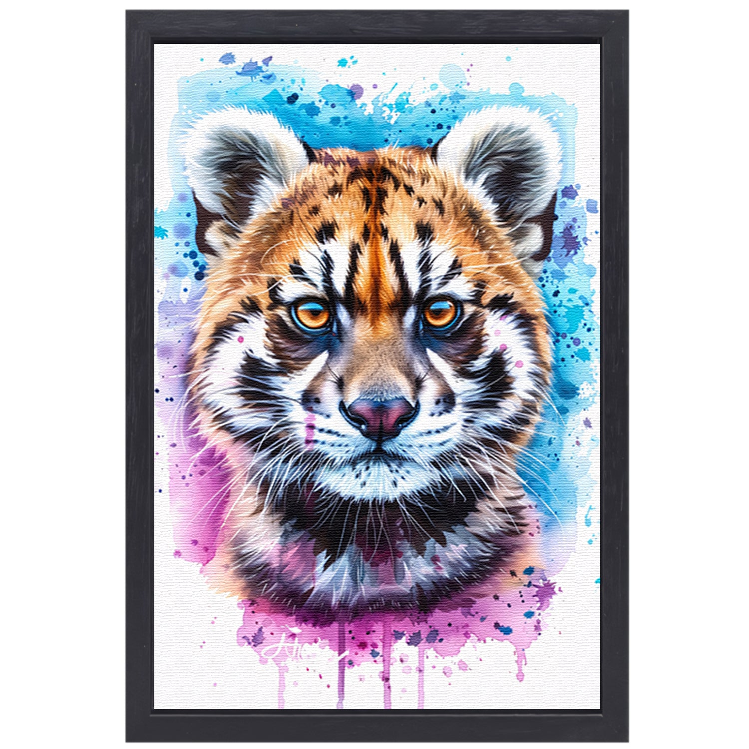 Kleurrijk tijgerportret in aquarelstijl canvas met baklijst