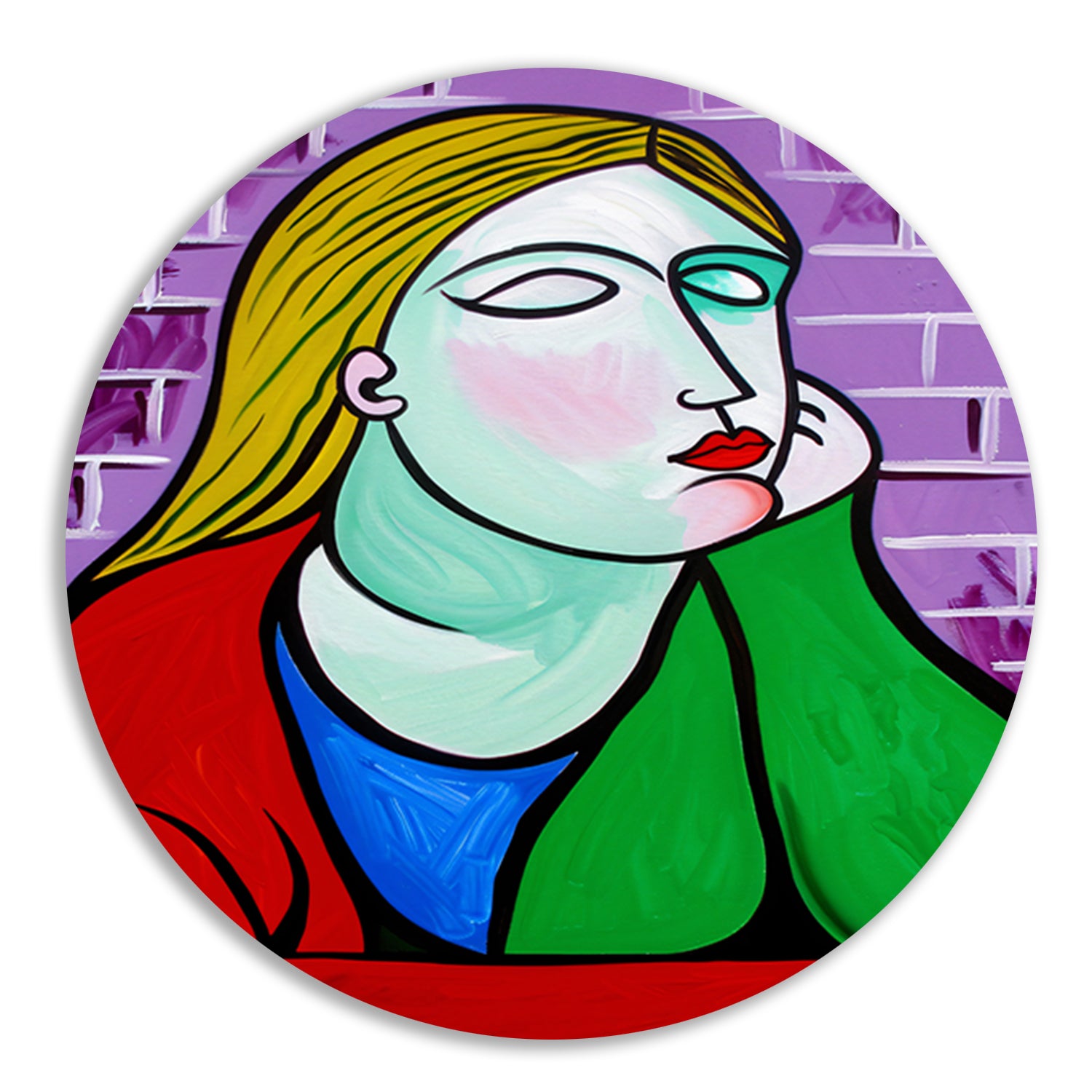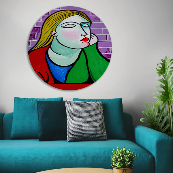 Kleurrijk vrouw in gedachten aluminium muurcirkel