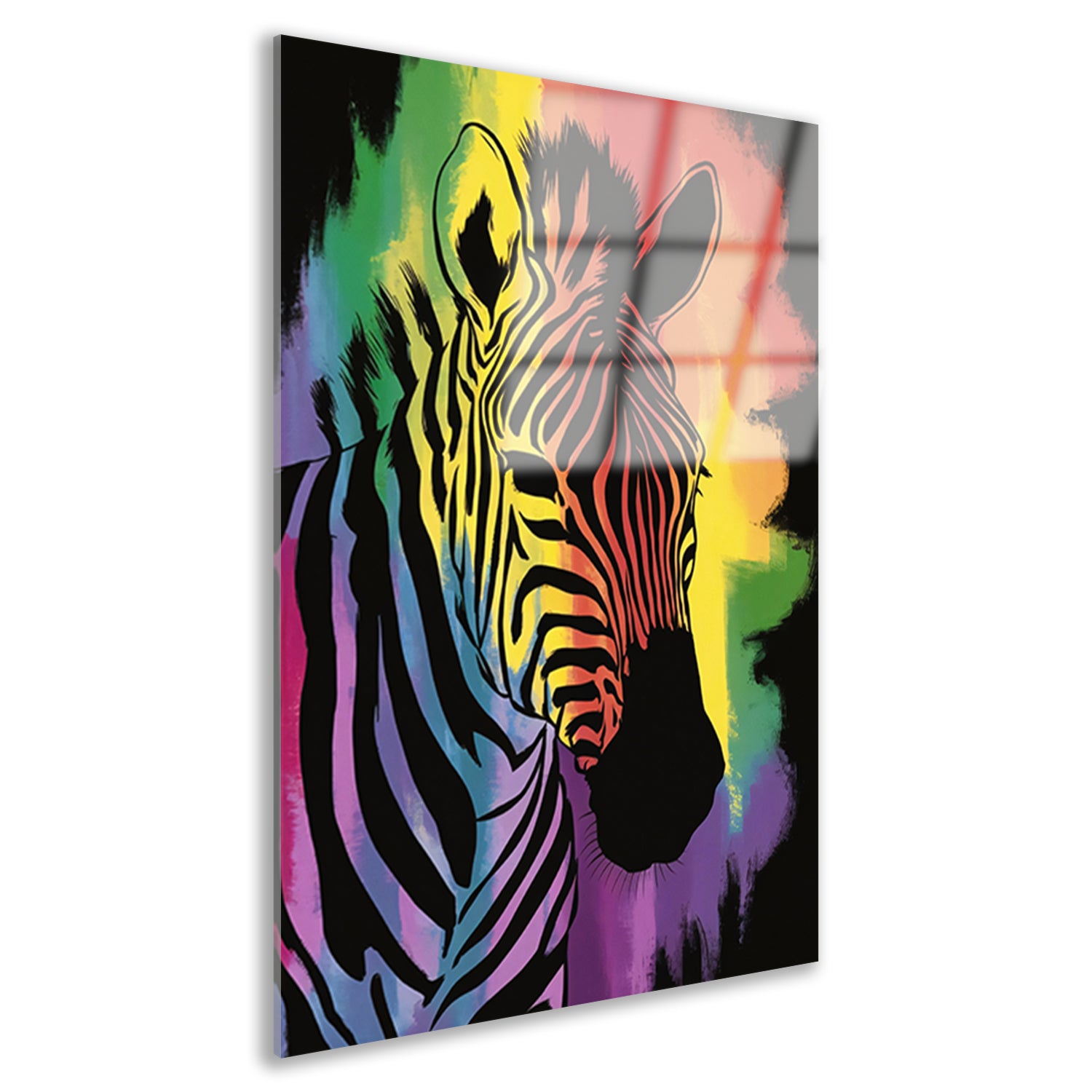 Kleurrijk zebra schilderij met regenboog acrylglas