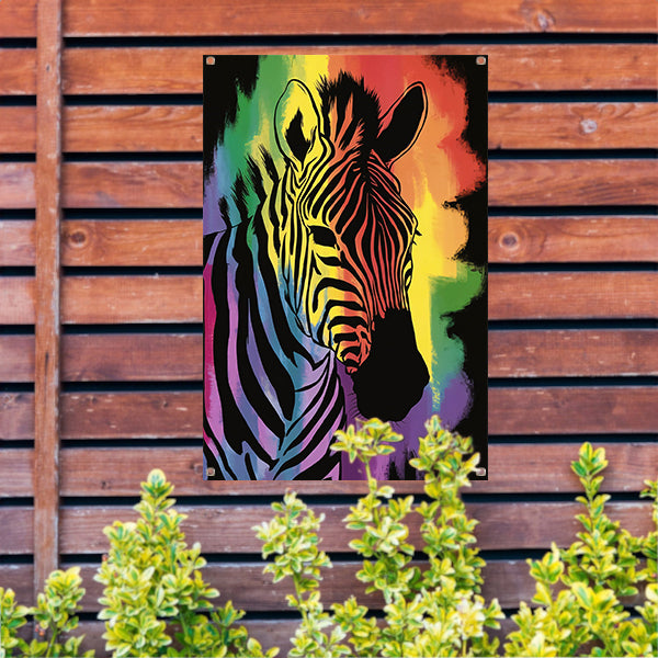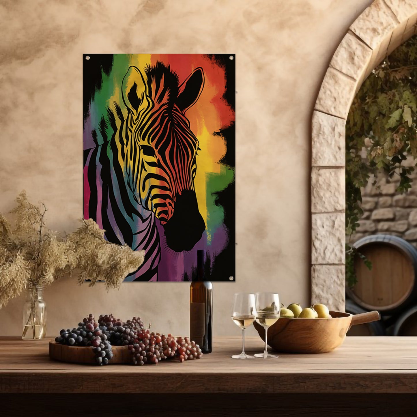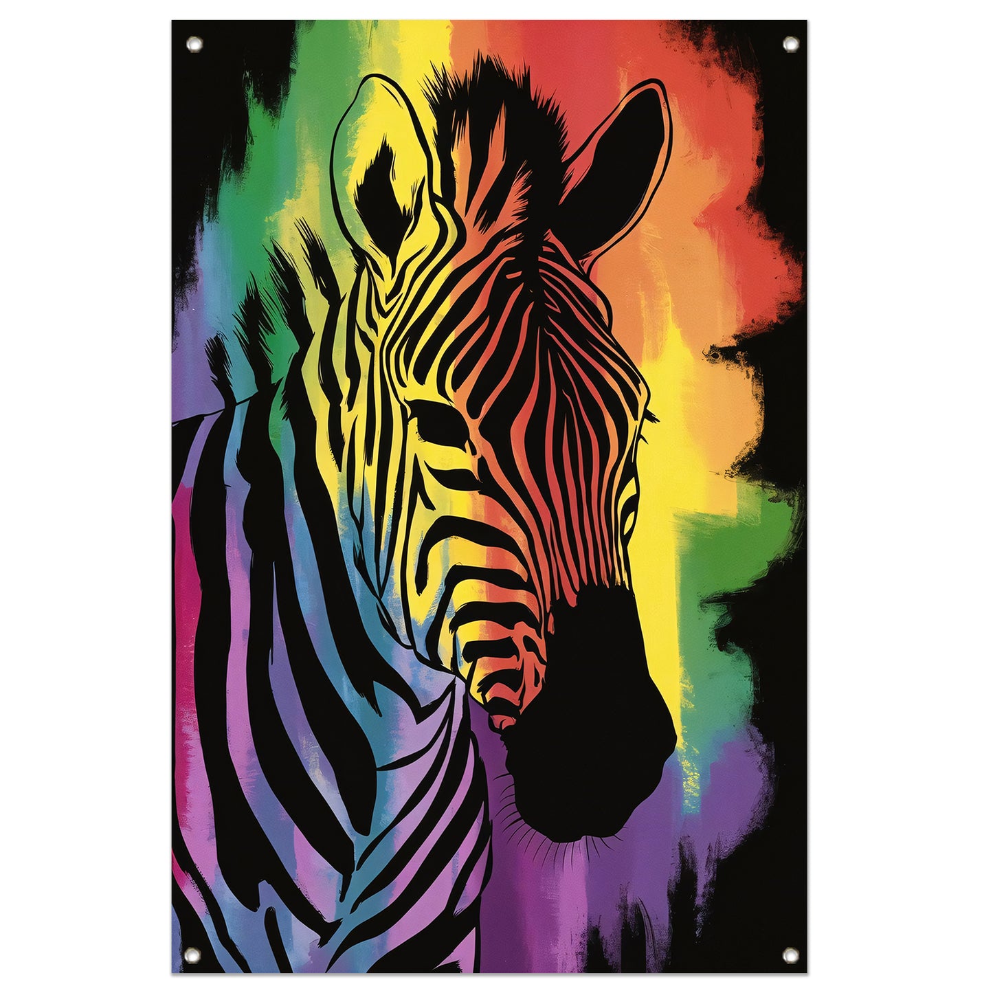 Kleurrijk zebra schilderij met regenboog tuinposter