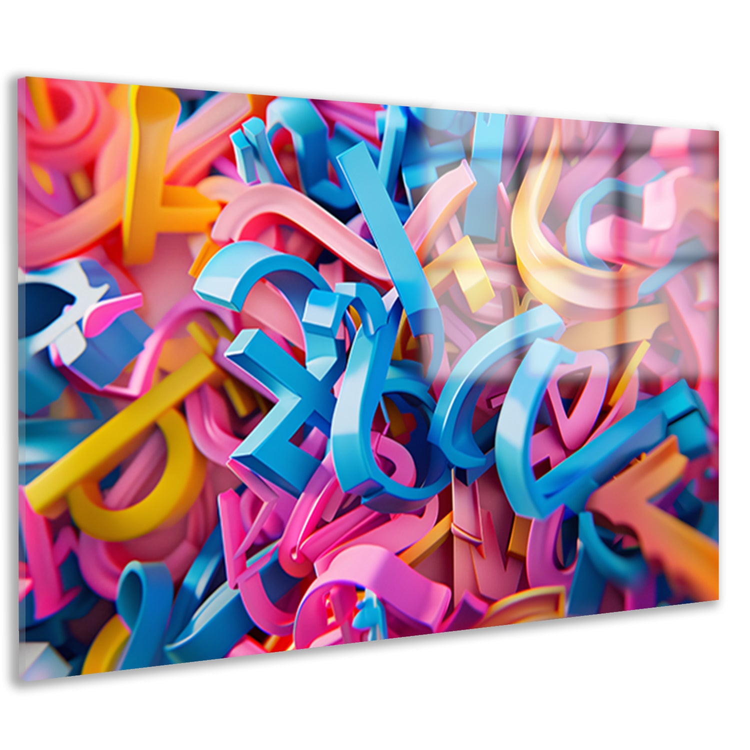 Kleurrijke 3D typografie met abstracte letters acrylglas