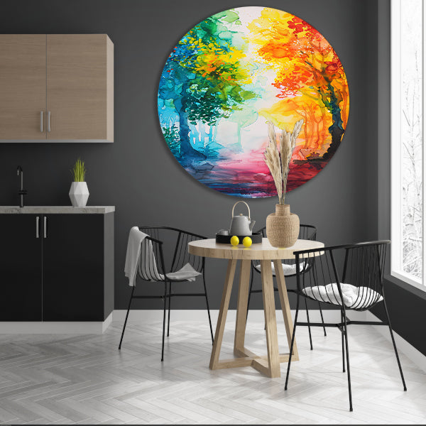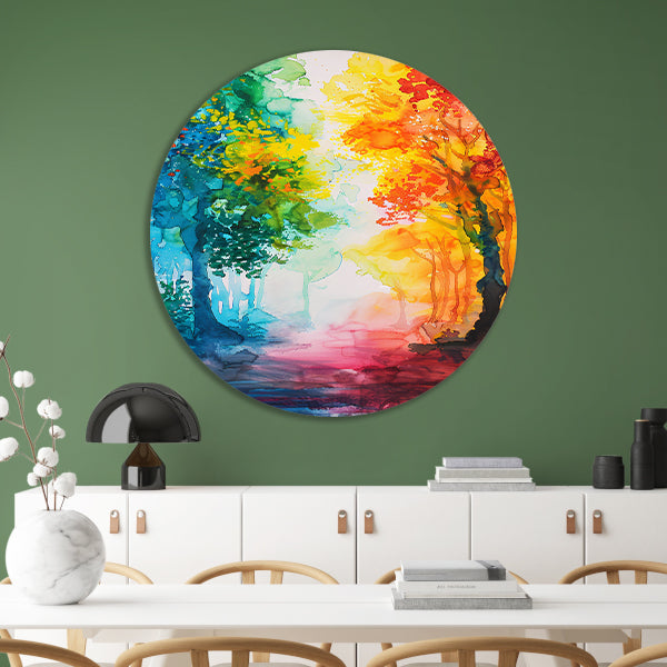 Kleurrijke abstracte aquarel van zomerse bomen forex muurcirkel