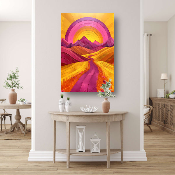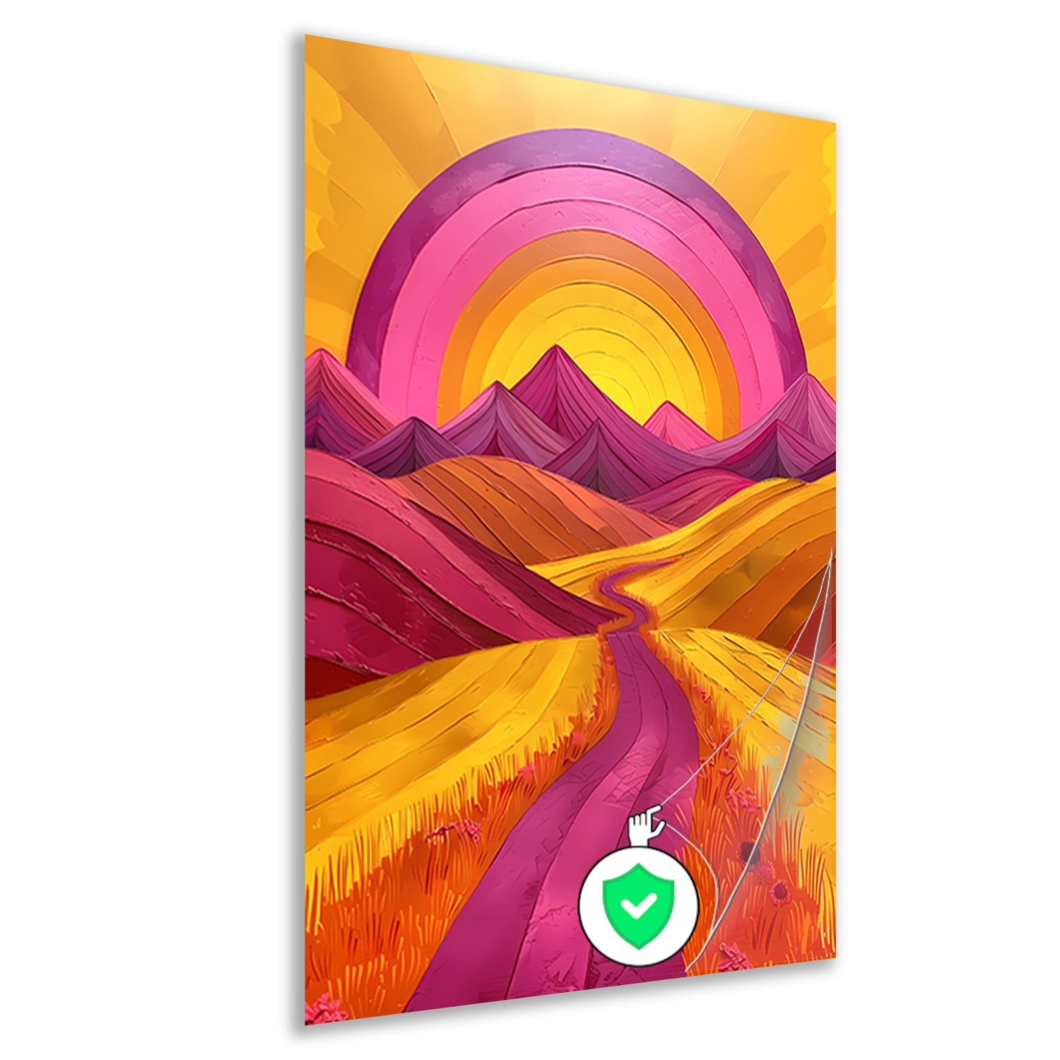 Kleurrijke Abstracte Bergen en Kronkelende Weg poster