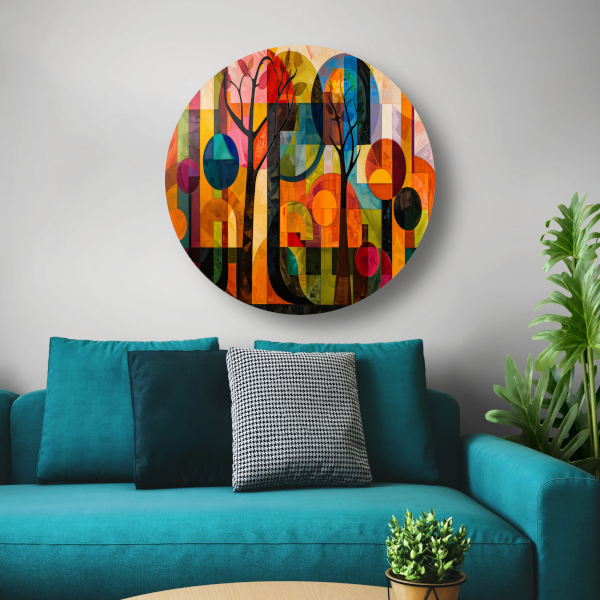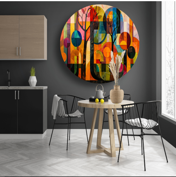 Kleurrijke Abstracte Bomen in Stedelijke Omgeving forex muurcirkel