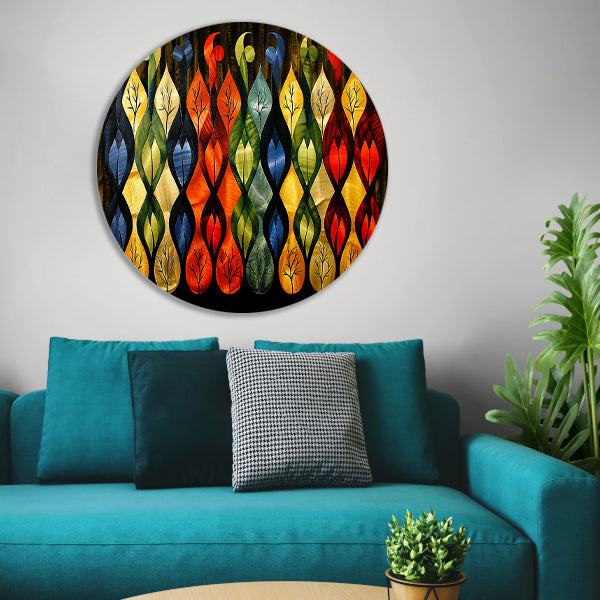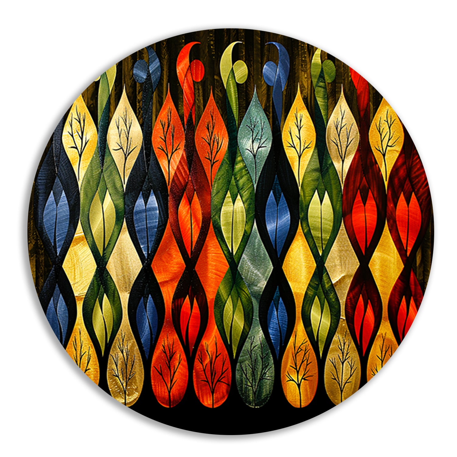 Kleurrijke abstracte bomen in verschillende stijlen aluminium muurcirkel