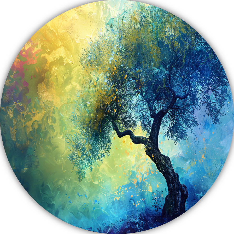 Kleurrijke Abstracte Boom aluminium muurcirkel