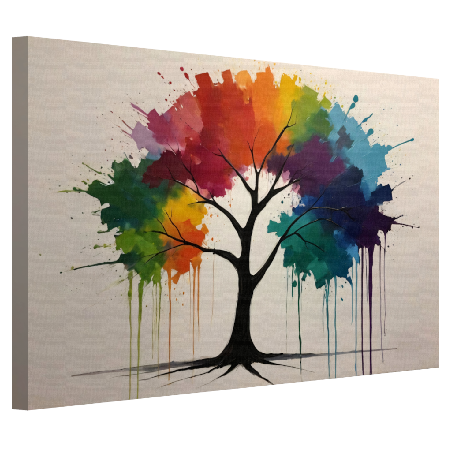 Kleurrijke Abstracte Boom met Druppelend Canvas canvas