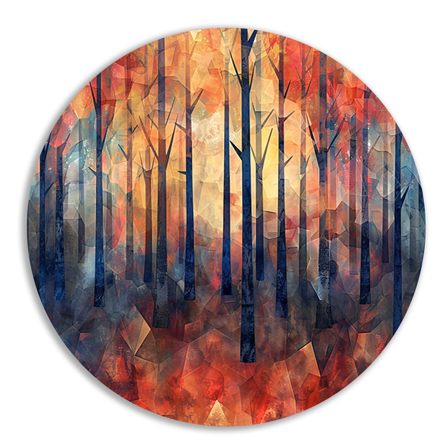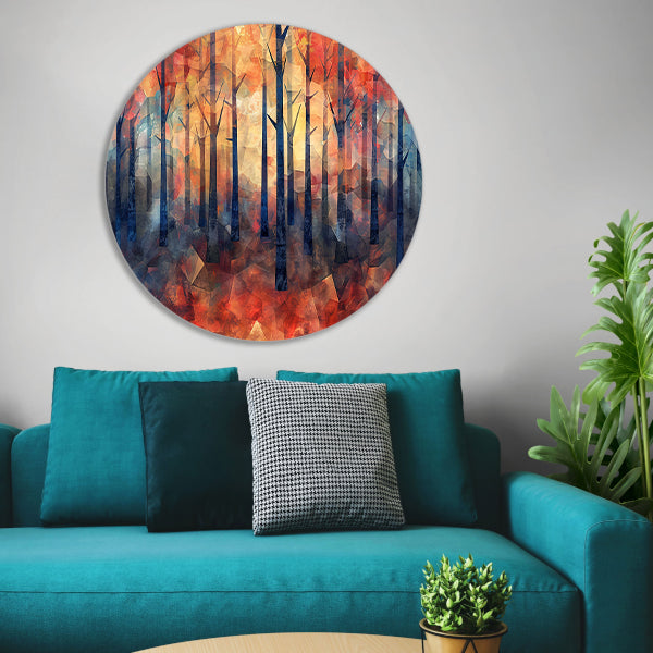 Kleurrijke abstracte bos schilderij in herfst forex muurcirkel