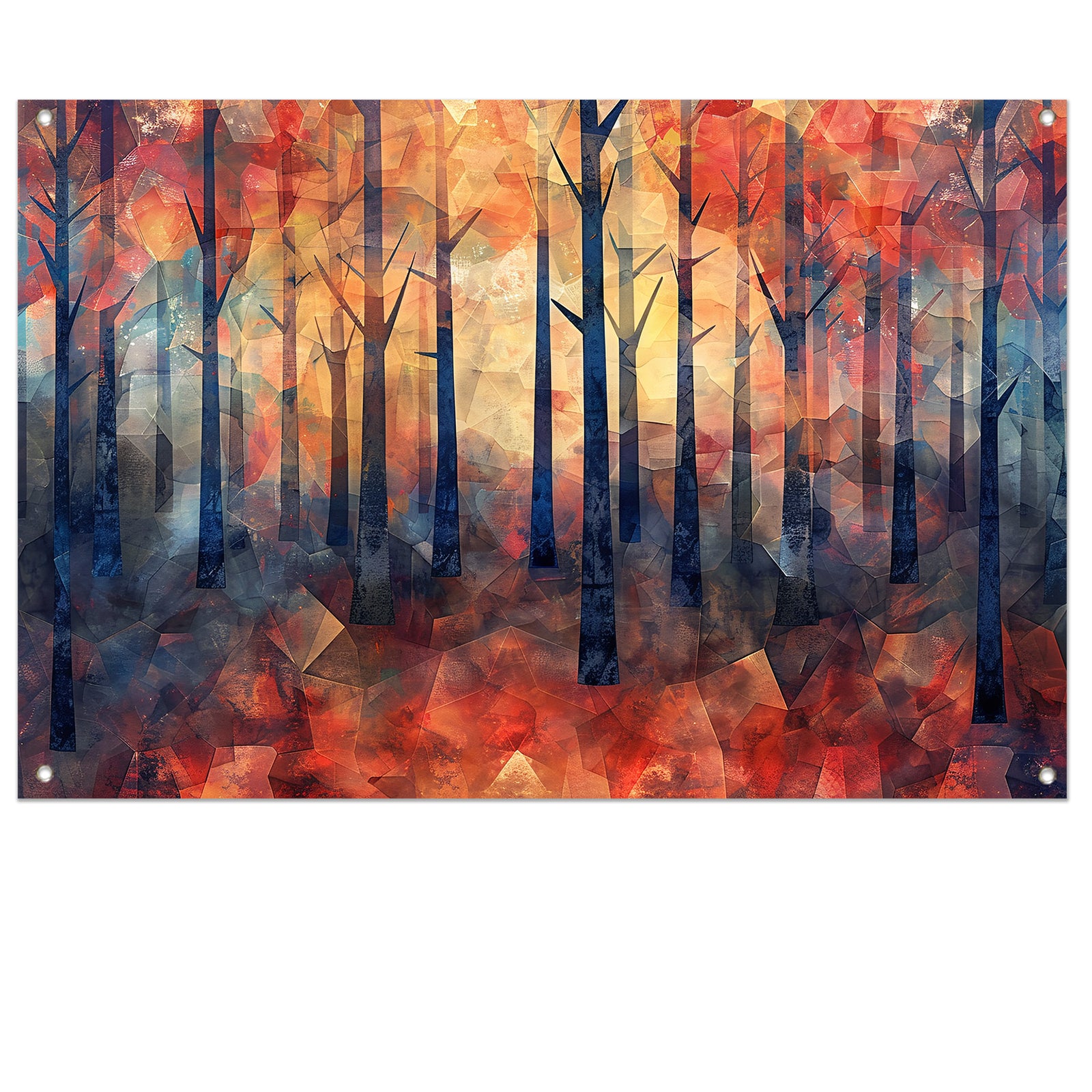 Kleurrijke abstracte bos schilderij in herfst tuinposter