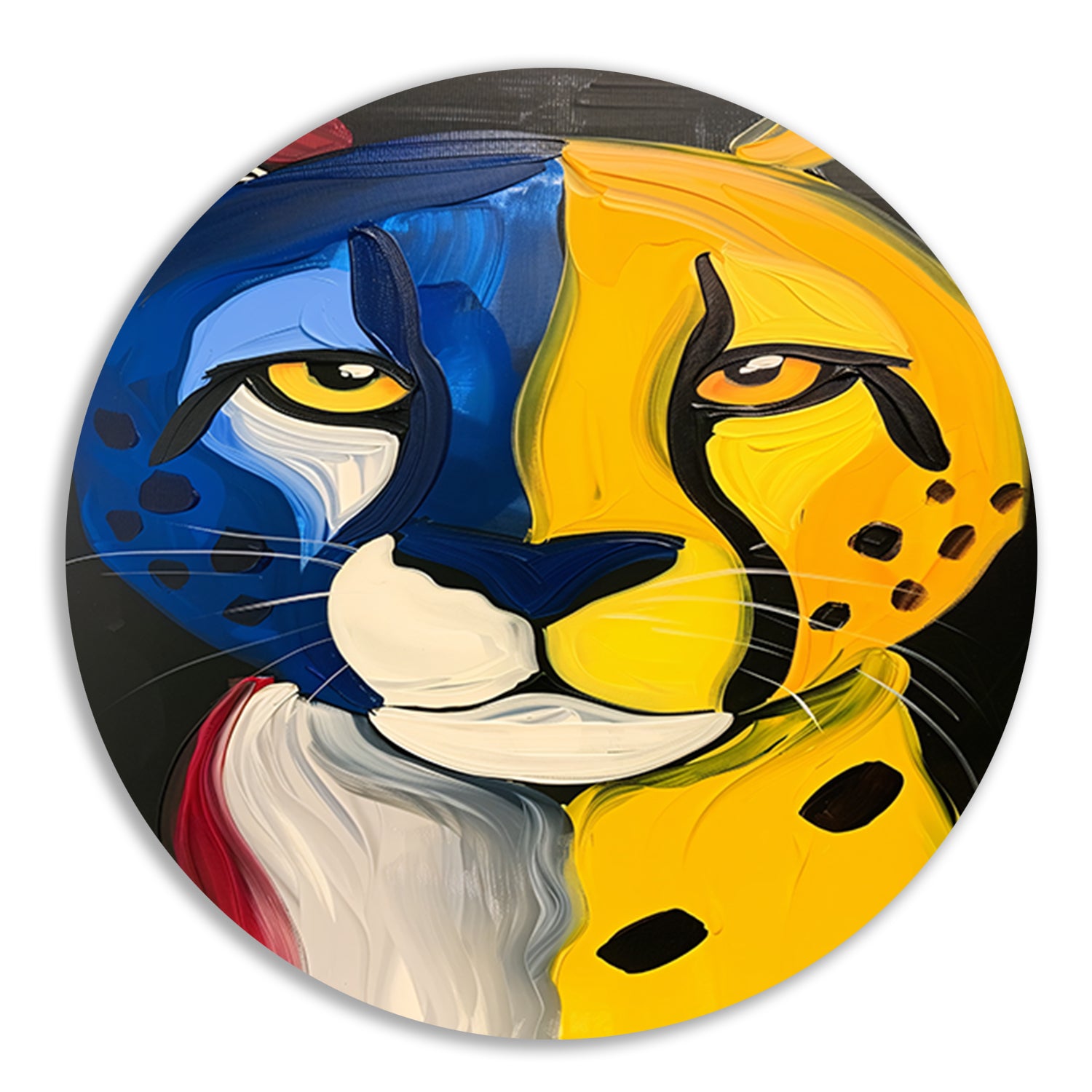 Kleurrijke abstracte cheeta in popart stijl aluminium muurcirkel