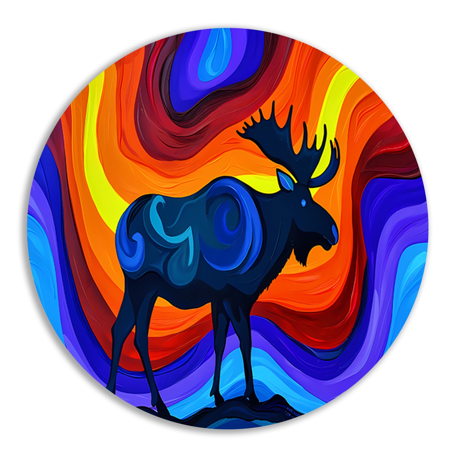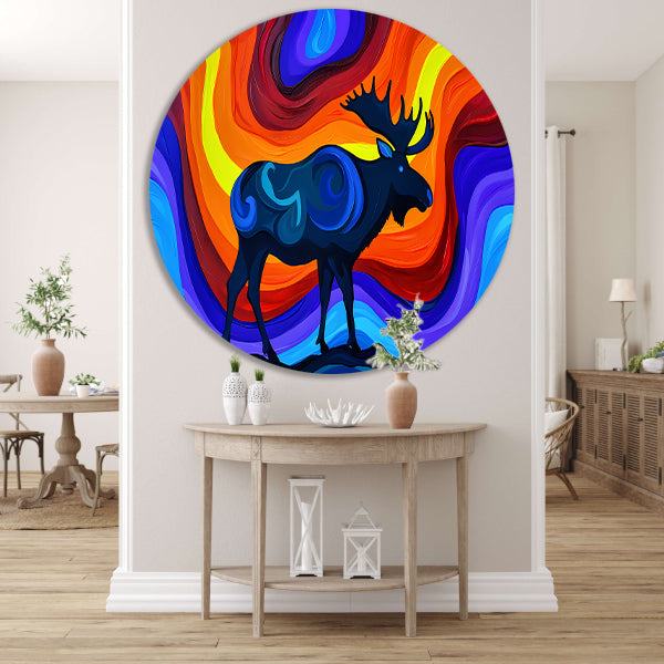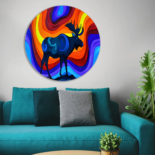 Kleurrijke abstracte eland met levendige achtergrond aluminium muurcirkel