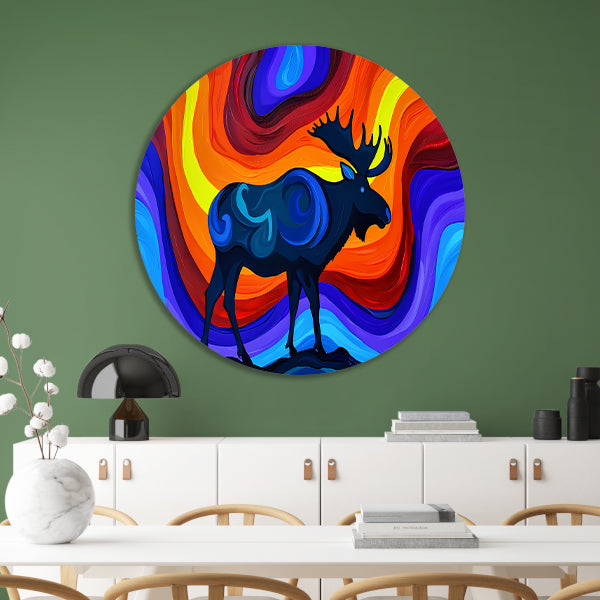 Kleurrijke abstracte eland met levendige achtergrond forex muurcirkel