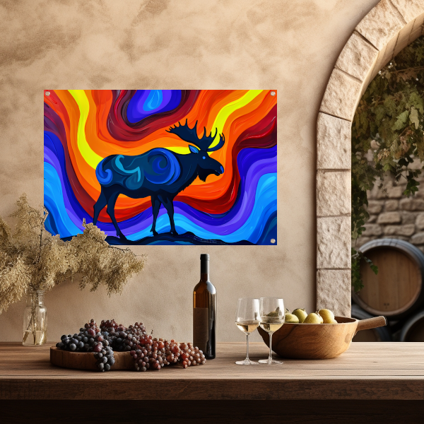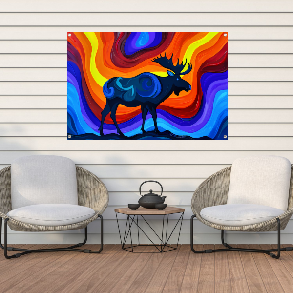 Kleurrijke abstracte eland met levendige achtergrond tuinposter