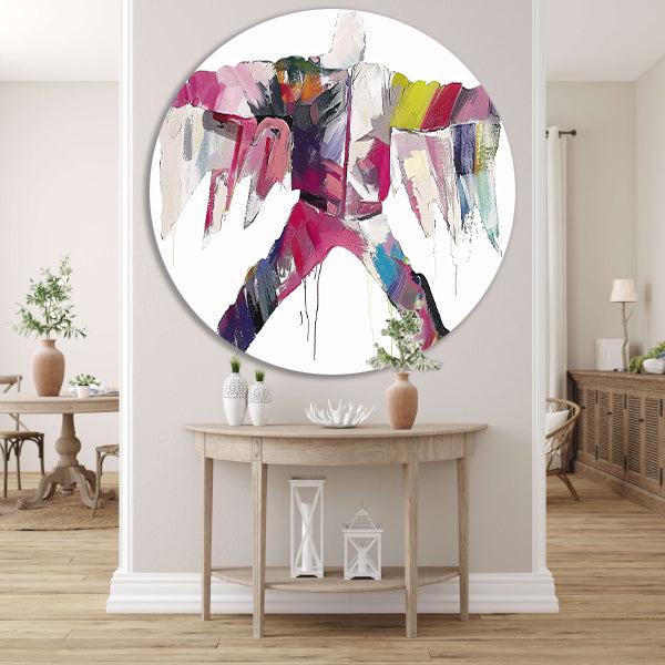 Kleurrijke abstracte figuur met dynamische vormen forex muurcirkel