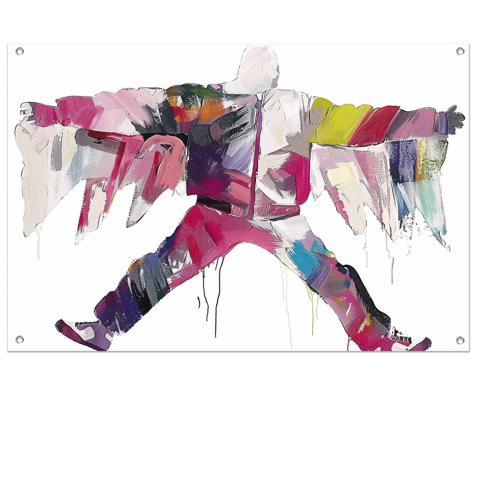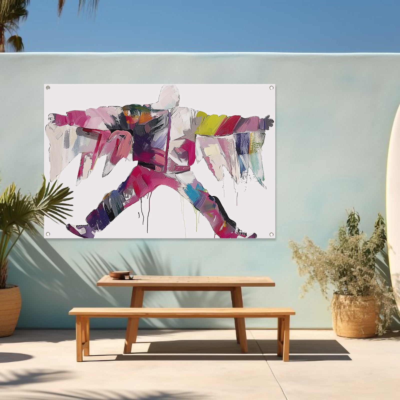 Kleurrijke abstracte figuur met dynamische vormen tuinposter