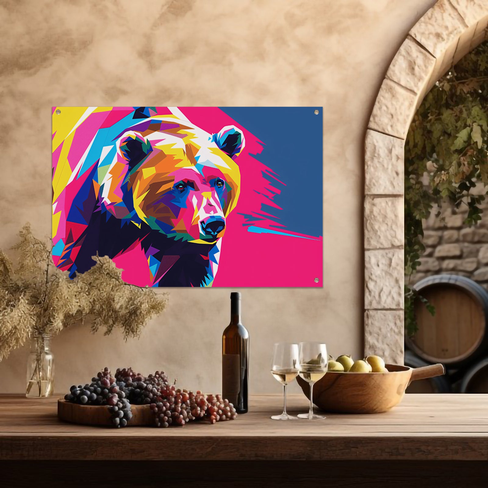 Kleurrijke abstracte geometrische beer tuinposter