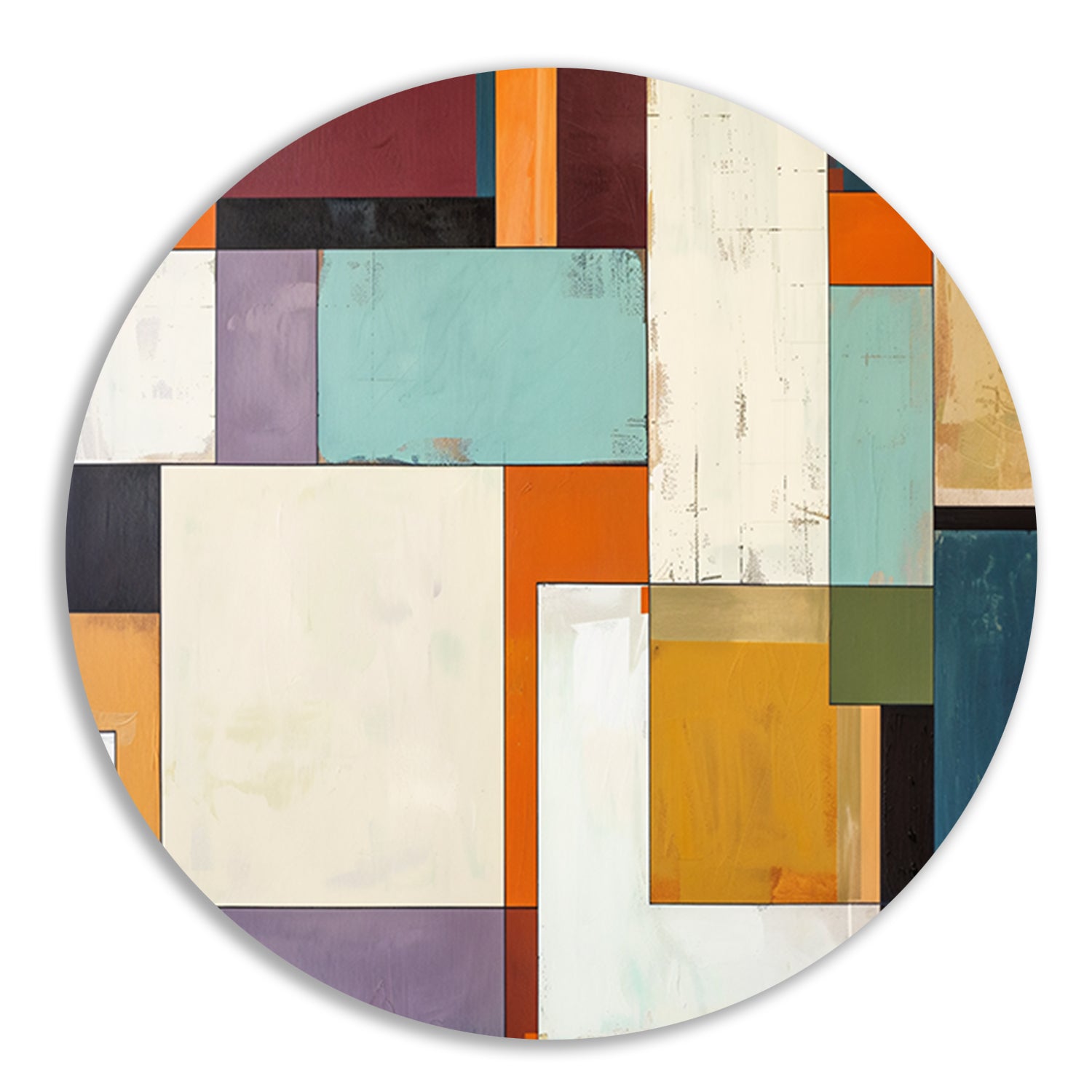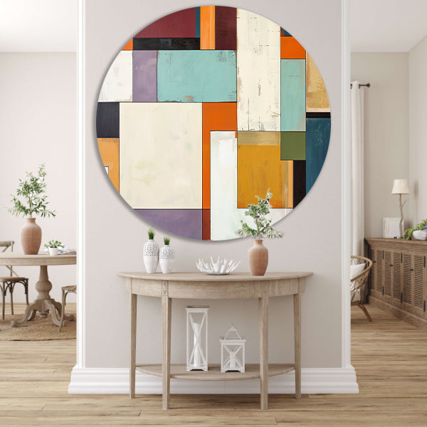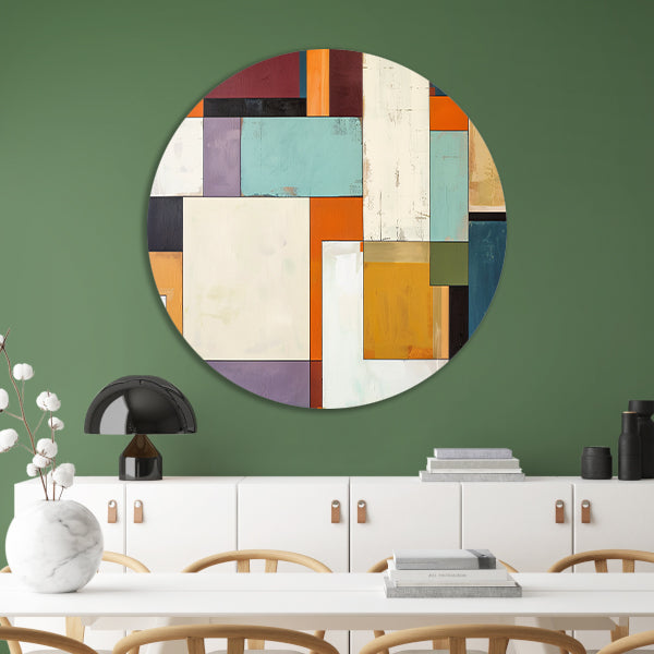 Kleurrijke abstracte geometrische rechthoeken kunstwerk aluminium muurcirkel