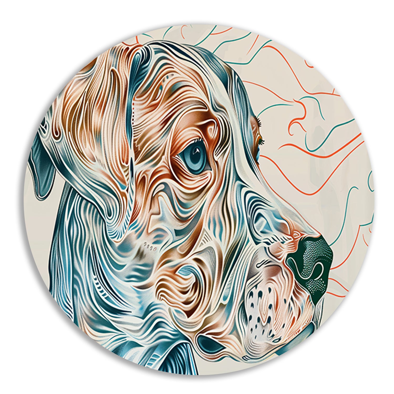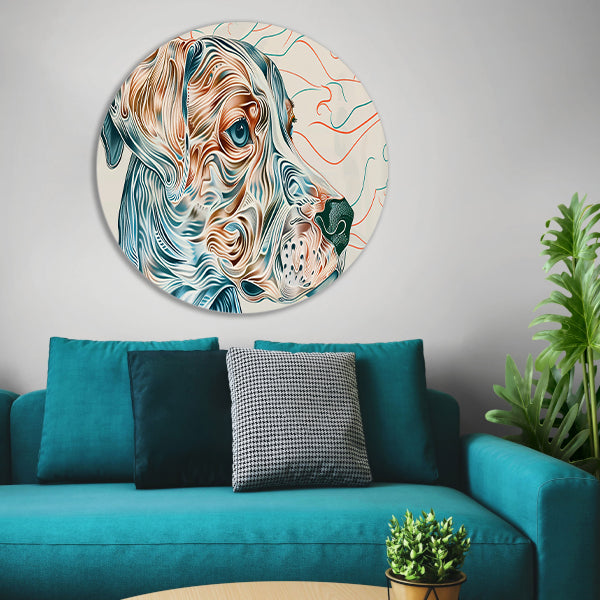 Kleurrijke abstracte hond lijntekening schilderij aluminium muurcirkel