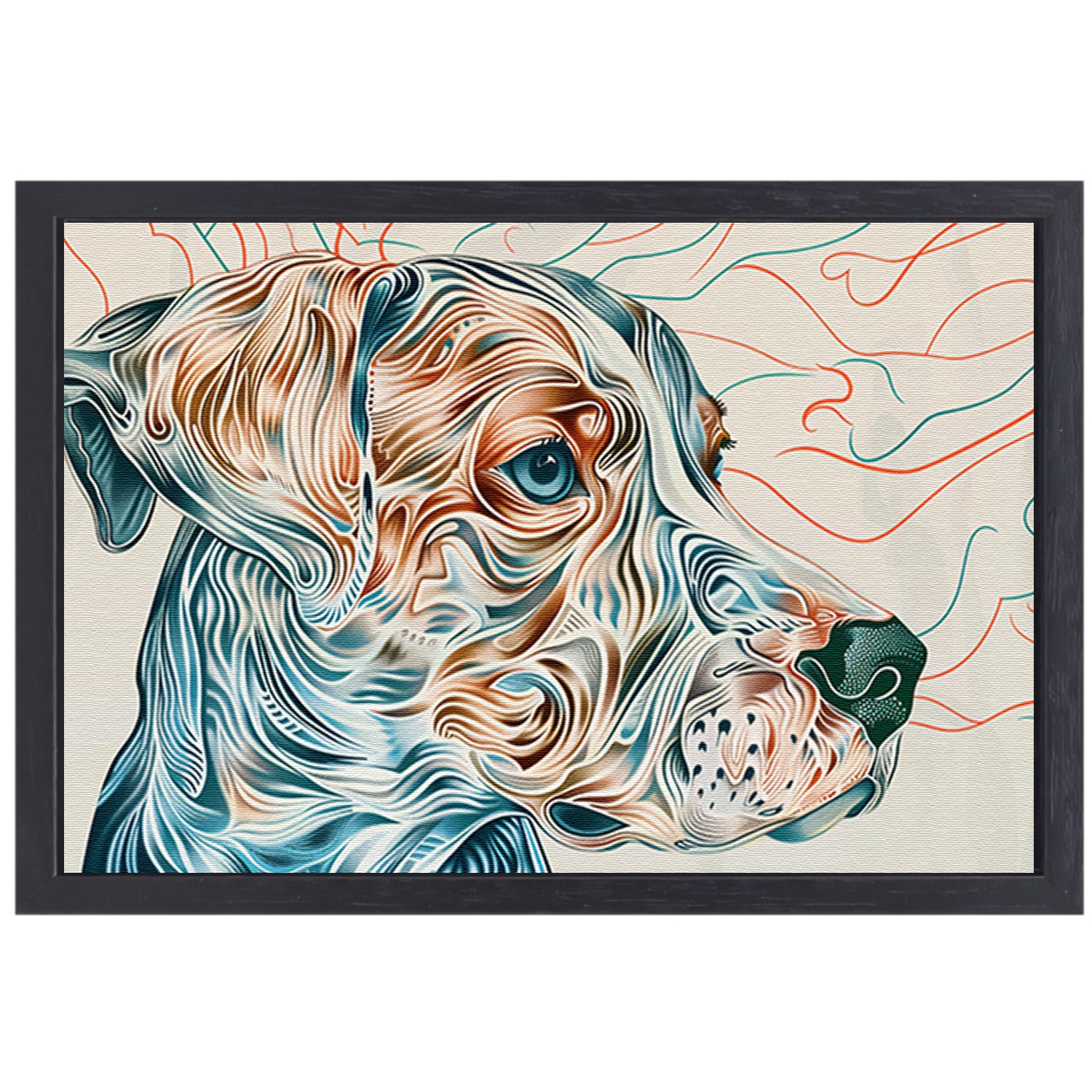Kleurrijke abstracte hond lijntekening schilderij canvas met baklijst