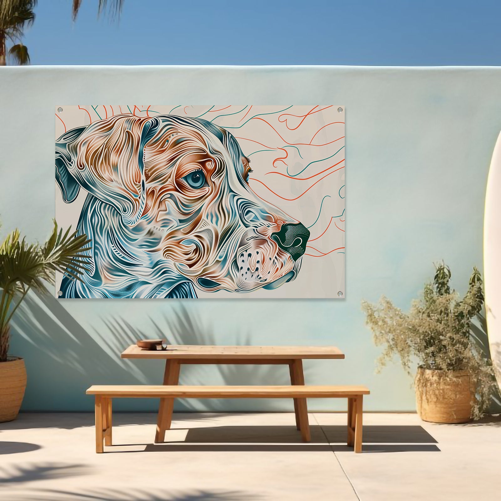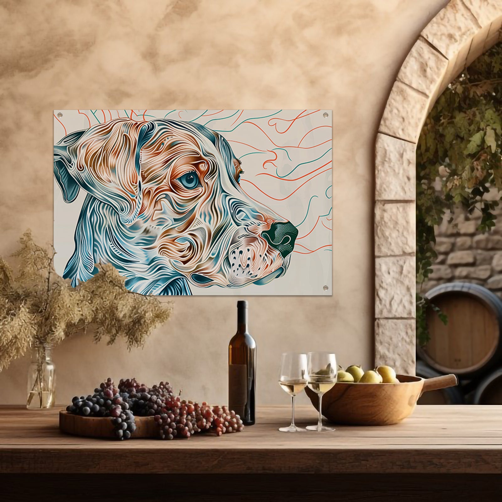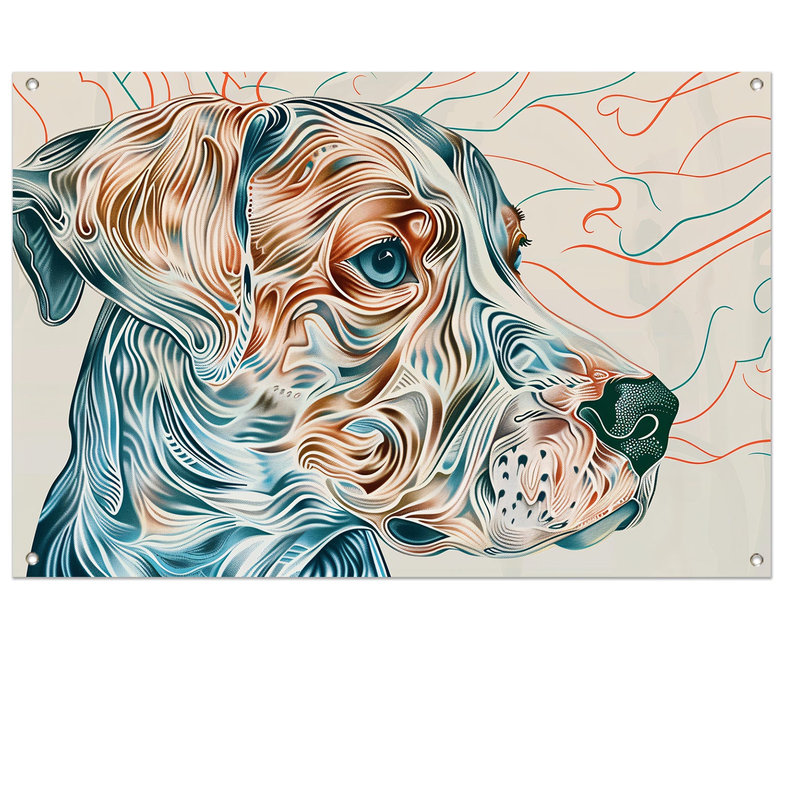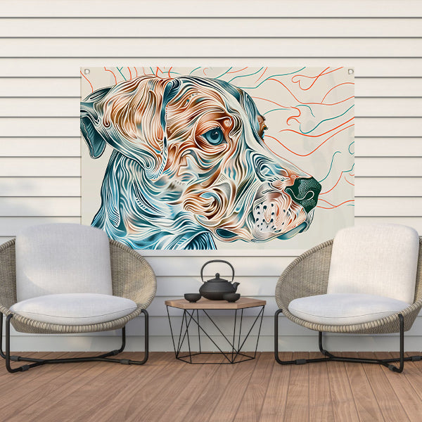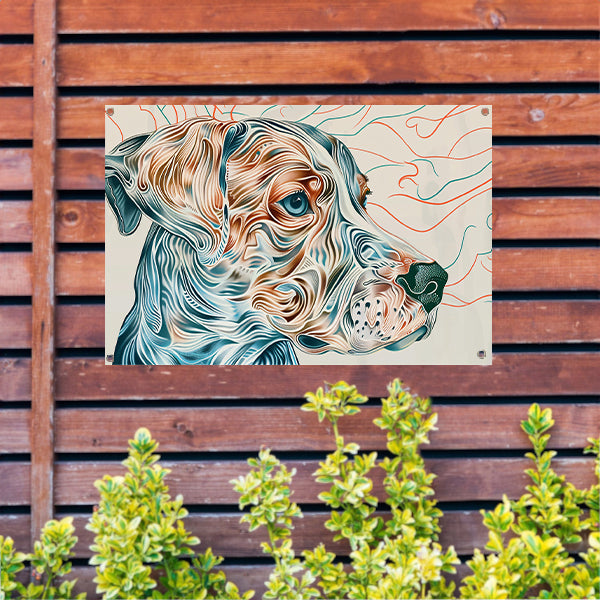 Kleurrijke abstracte hond lijntekening schilderij tuinposter