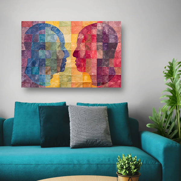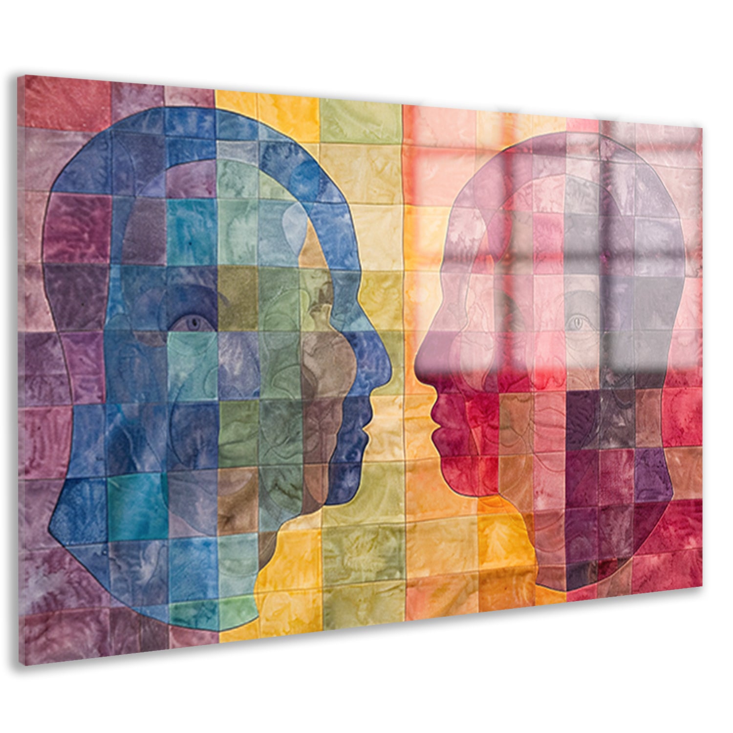 Kleurrijke abstracte hoofden in kubistische stijl acrylglas