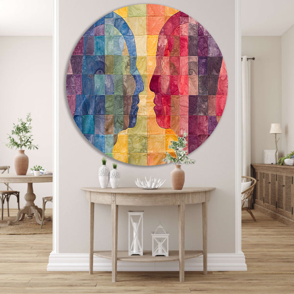 Kleurrijke abstracte hoofden in kubistische stijl forex muurcirkel