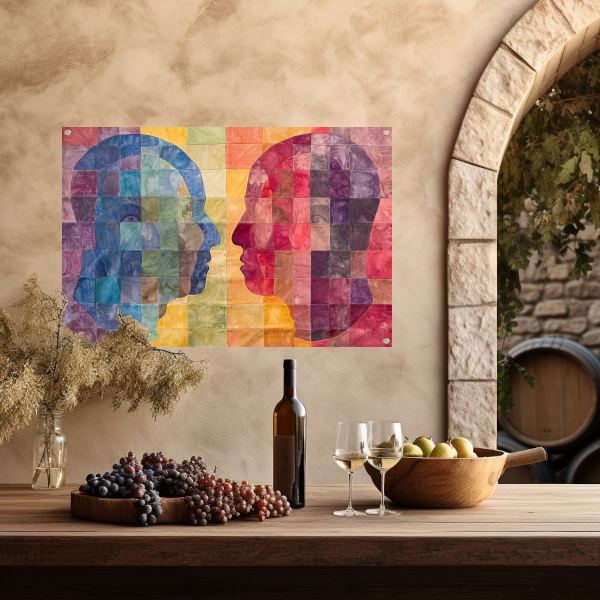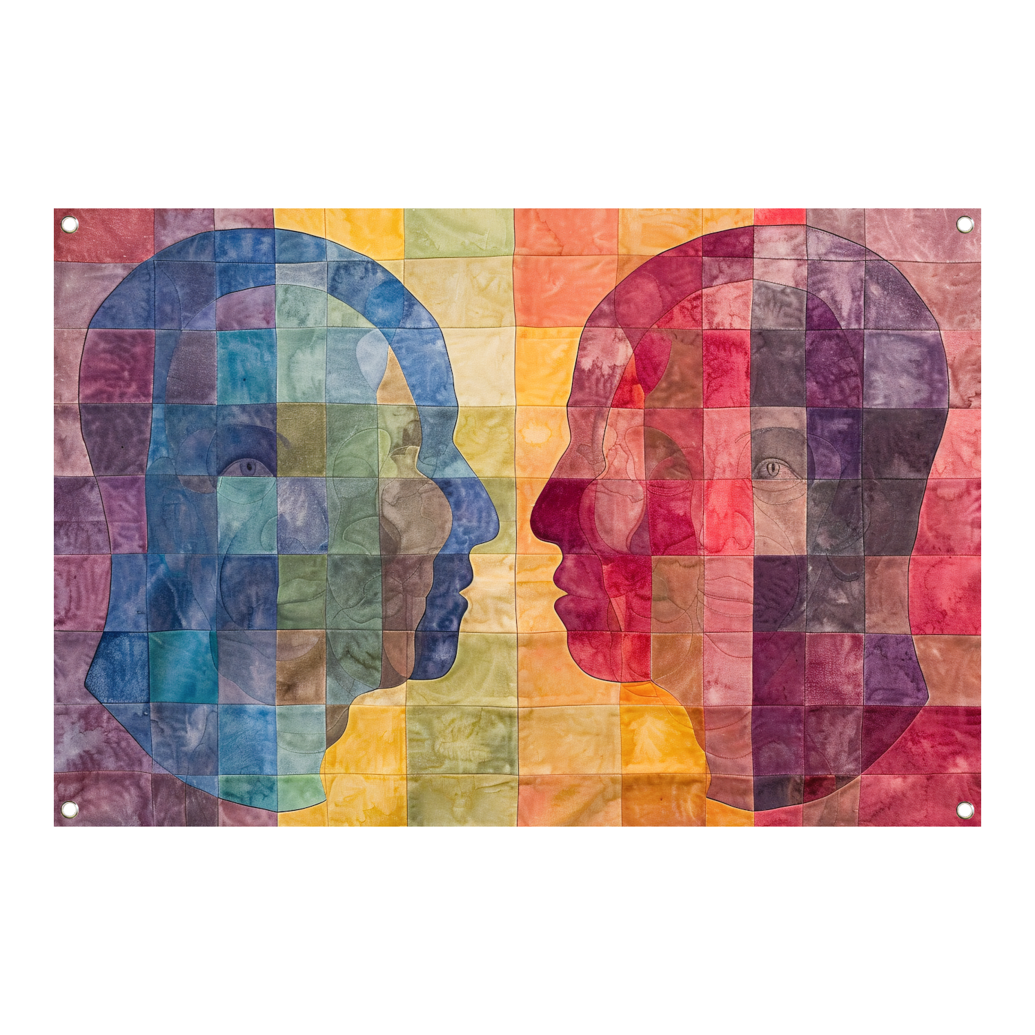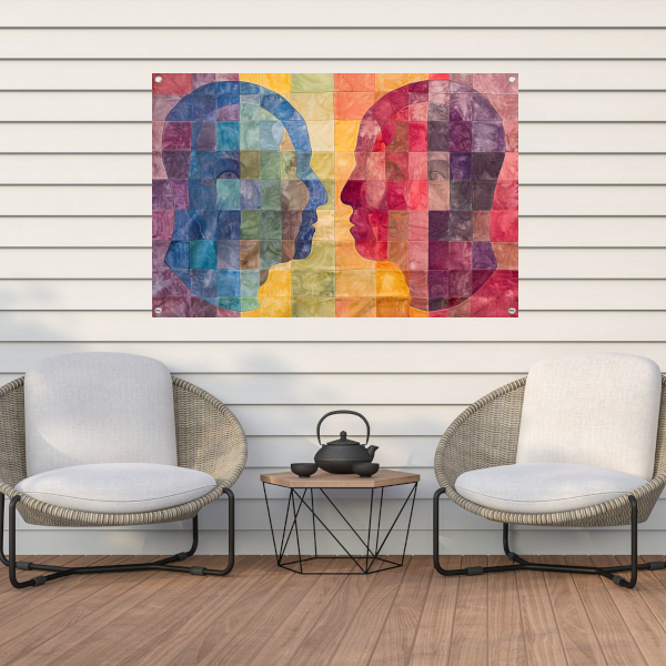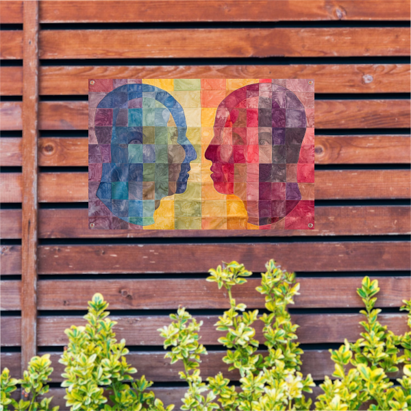 Kleurrijke abstracte hoofden in kubistische stijl tuinposter