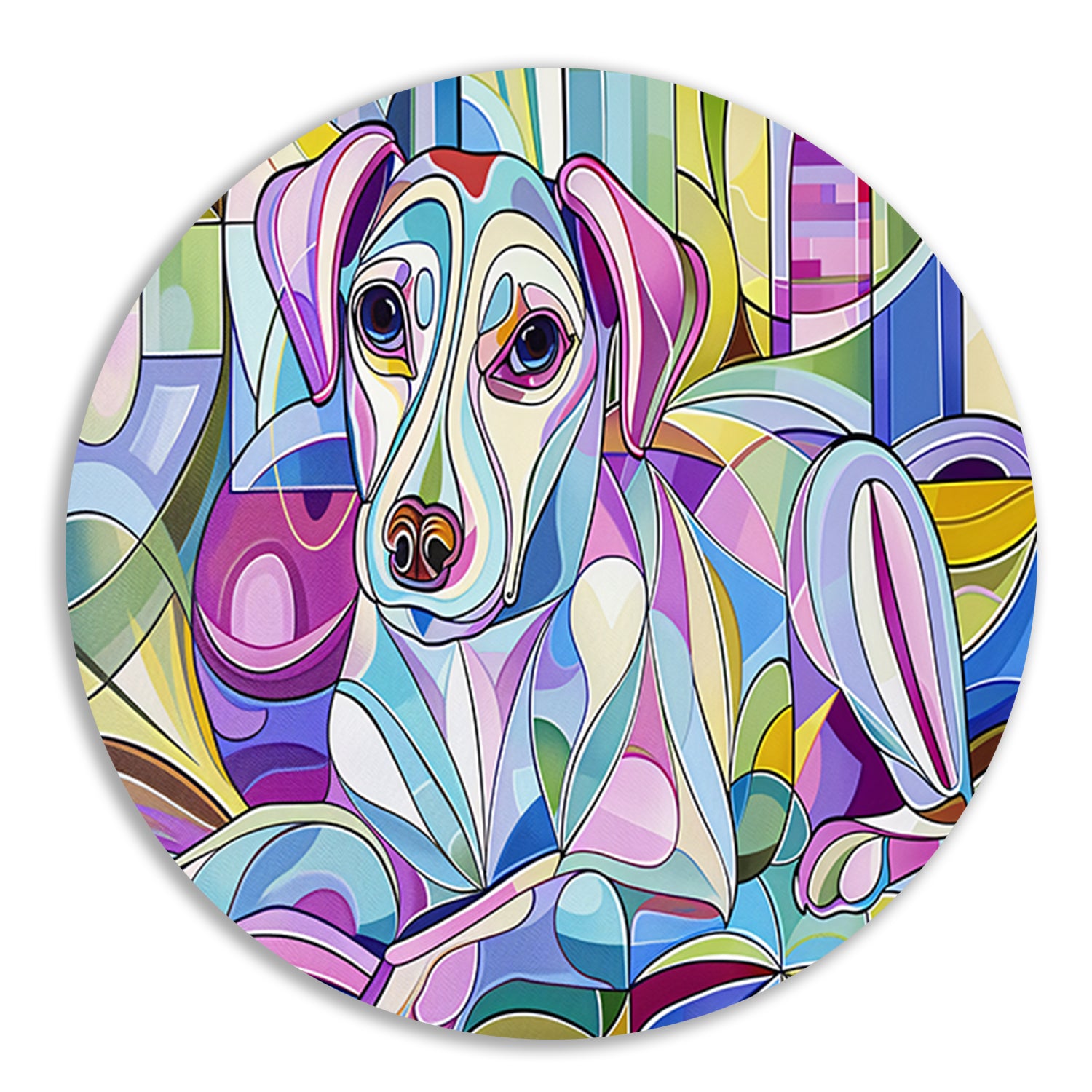 Kleurrijke abstracte illustratie van een hond aluminium muurcirkel