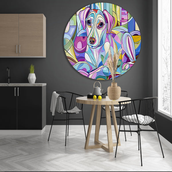 Kleurrijke abstracte illustratie van een hond forex muurcirkel