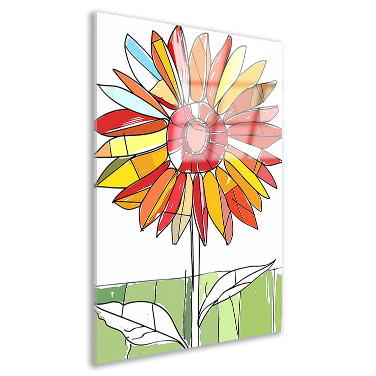 Kleurrijke abstracte illustratie van zonnebloem acrylglas