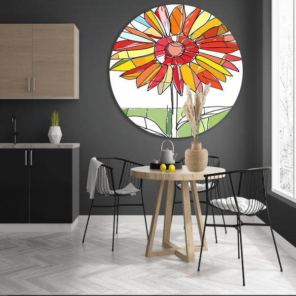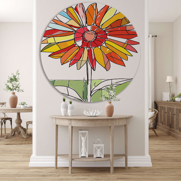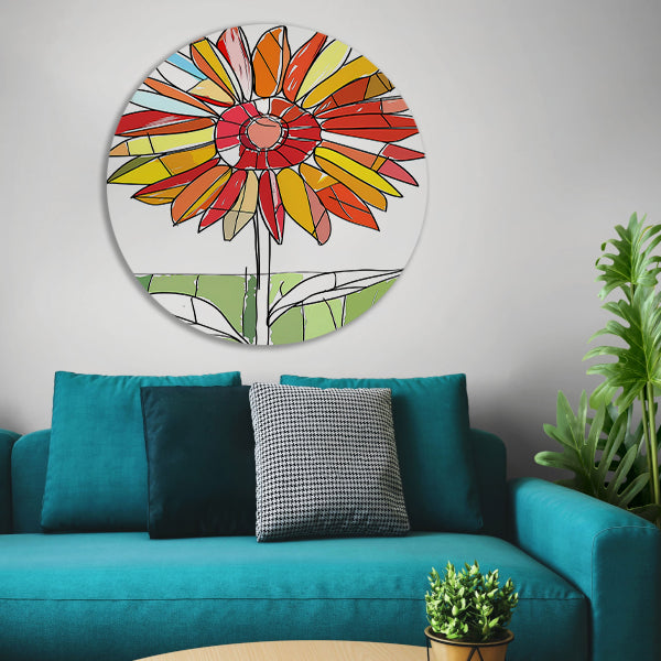 Kleurrijke abstracte illustratie van zonnebloem aluminium muurcirkel
