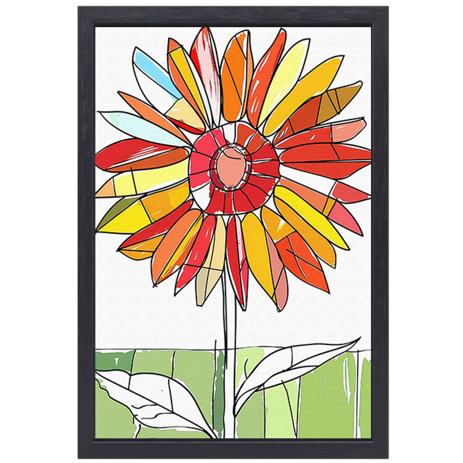 Kleurrijke abstracte illustratie van zonnebloem canvas met baklijst